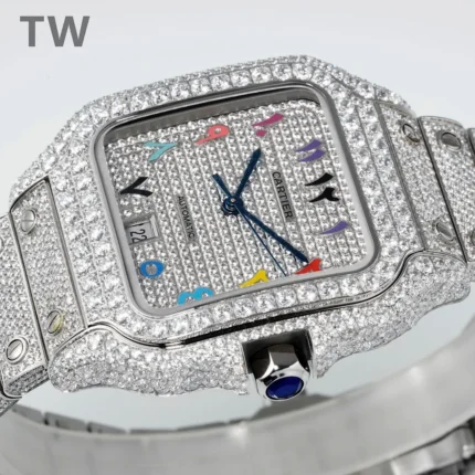 Cartier Santos Full Diamond Watch Silver