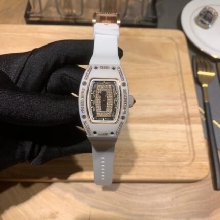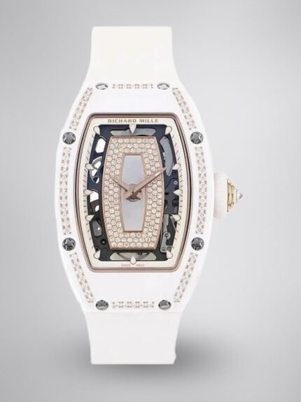 Elegant Swiss Richard Mille RM 07-01 Replica White Ceramic & Rose Gold Diamond Dial Watch – Luxury Style For Women