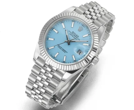 Rolex Datejust with 3235 Movement – Silver Stainless Steel, Ice Blue Dial, Fluted Bezel