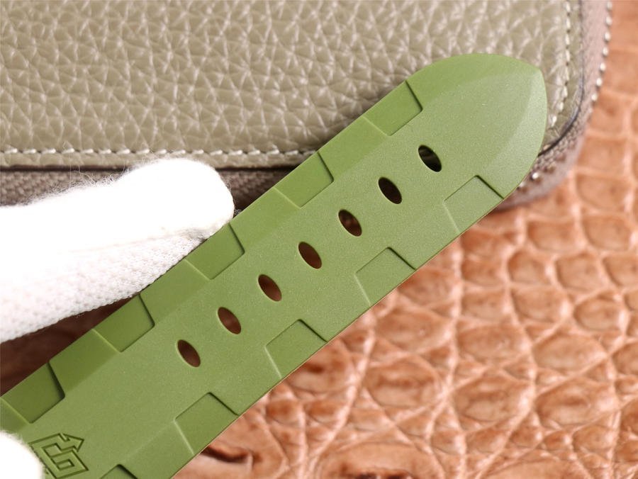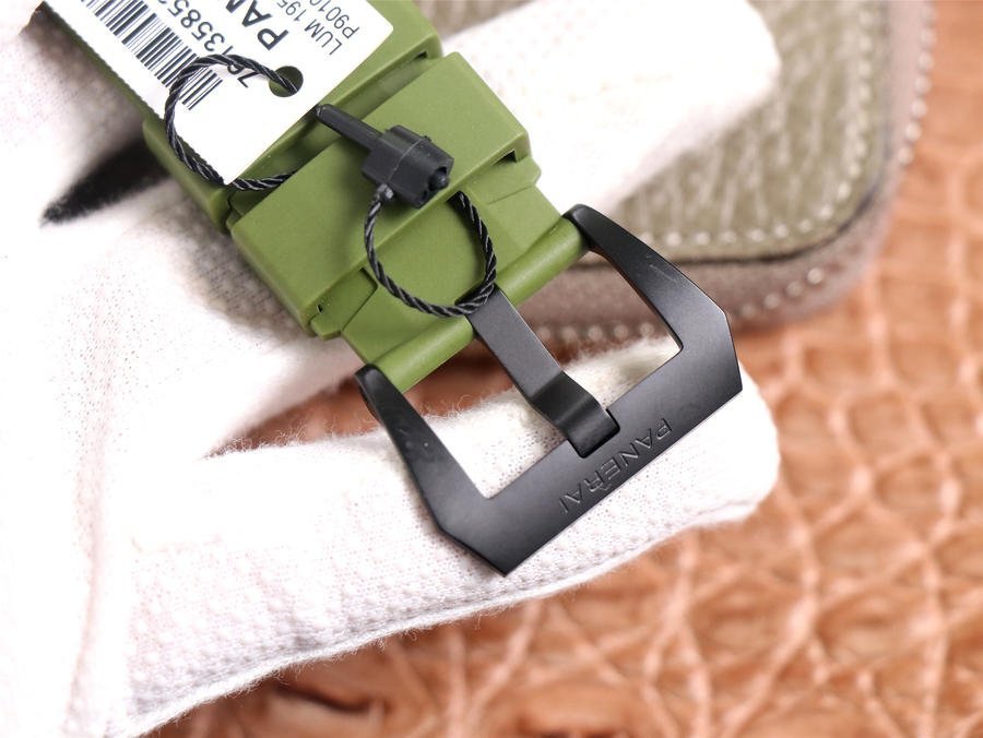 Black Rubber Strap with Steel Tang Buckle complete with Panerai Markings and Engravings.