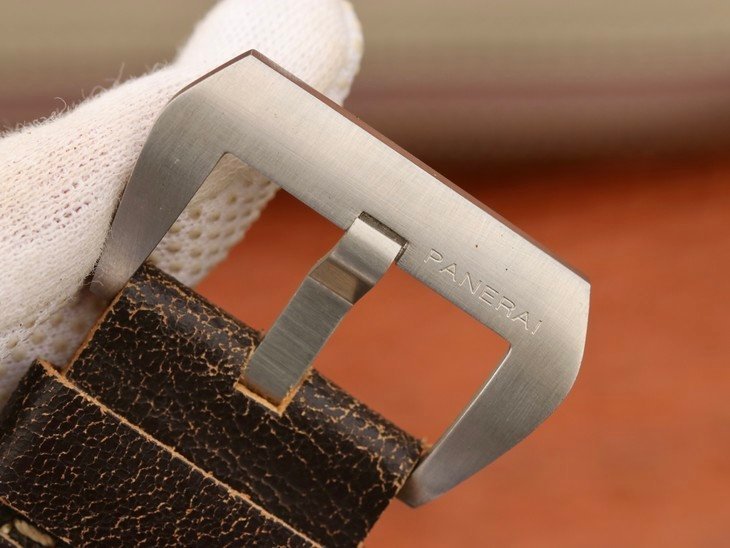 Brown Distressed Calf Skin Leather Strap with Titanium Tang Buckle complete with Panerai Markings and Engravings