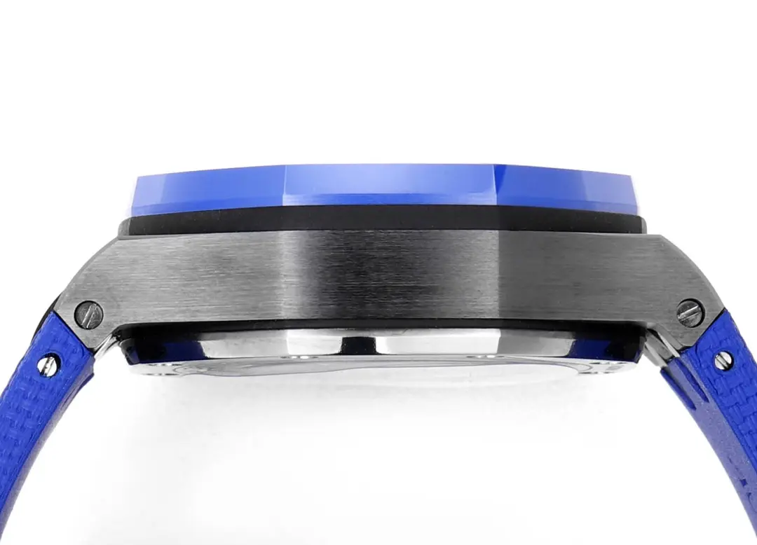 - Ceramic construction of high quality: This watch has a ceramic strap and case, which are made using Japanese zirconia technology. The result is a color that’s consistent, with a dense finish, without any pigments. Precision craftsmanship: The case, the bezel and the case back are all CNC-machined to achieve a perfect finish and avoid any sharp edges. Classic design elements: Dial features the AP grid with layered, perfectly polished squares. A sapphire lens magnifies the date at 3 o’clock, in keeping with the original design. Superior Hand-Finished Detail: The hand-filled luminous material imported from Switzerland is used to fill the hands and markers, giving them a bright and even luminescence. This closely matches the original. The enhanced movement uses a 7750 modified movement that mimics the 3126 Chronograph movement. It has subdials located at 12, 6 and 9 o’clock to represent small seconds, 12 hours, and 30 minute chronograph functions. This movement has been polished to enhance stability. This TC Audemars Pigot Royal Oak Offshore Chronograph is the ultimate in timepieces craftsmanship. It features a blue ceramic case, strap and precision engineering. The movement has been meticulously crafted. Explore the finest and see the difference in quality.