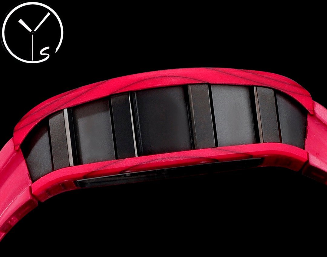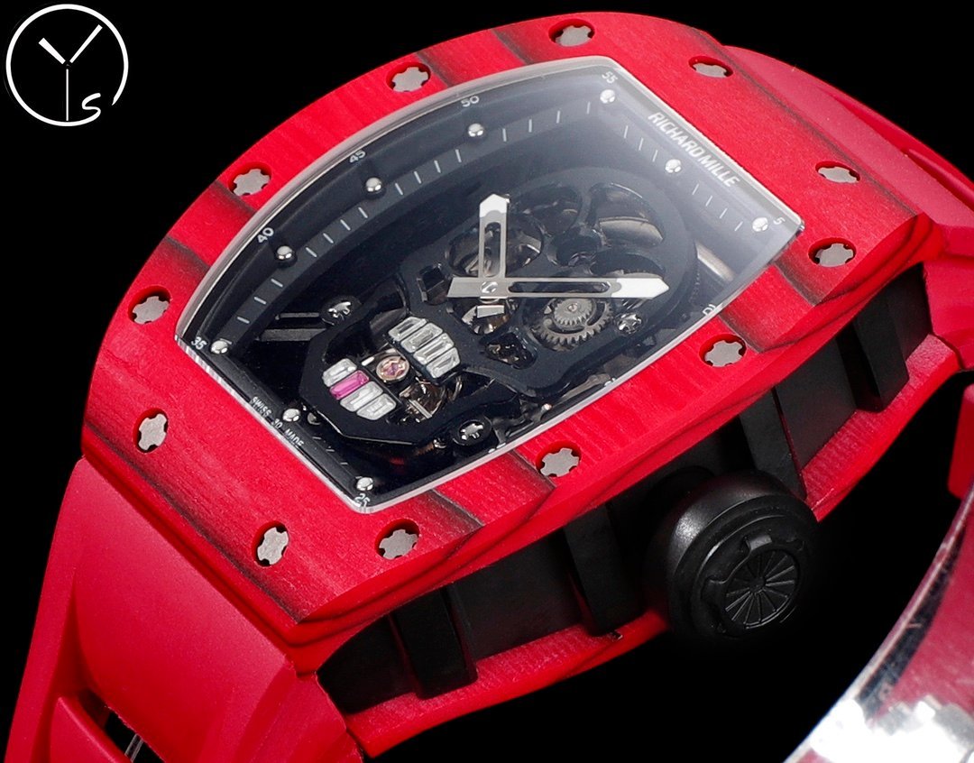 Best Richard Mille RM52-01 Replica – Red Rubber Strap, Skeleton Dial, Swiss Tourbillon, Carbon Fiber Case