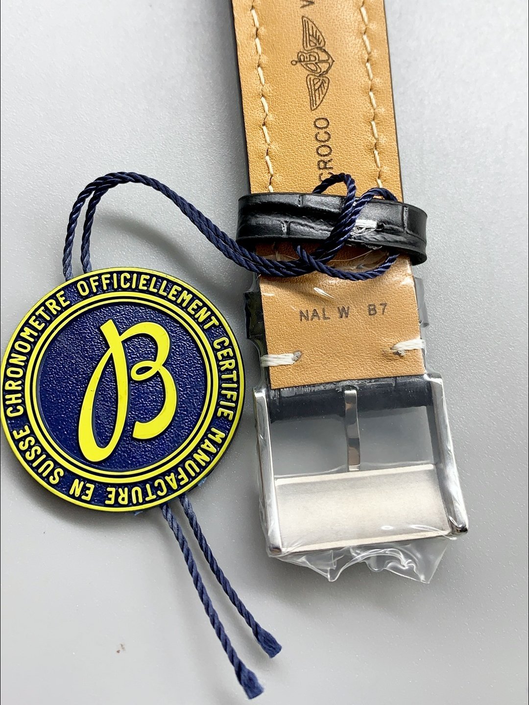 Genuine Leather Leather Strap with Stainless Steel Tang Buckle complete with Breitling Markings and Engravings