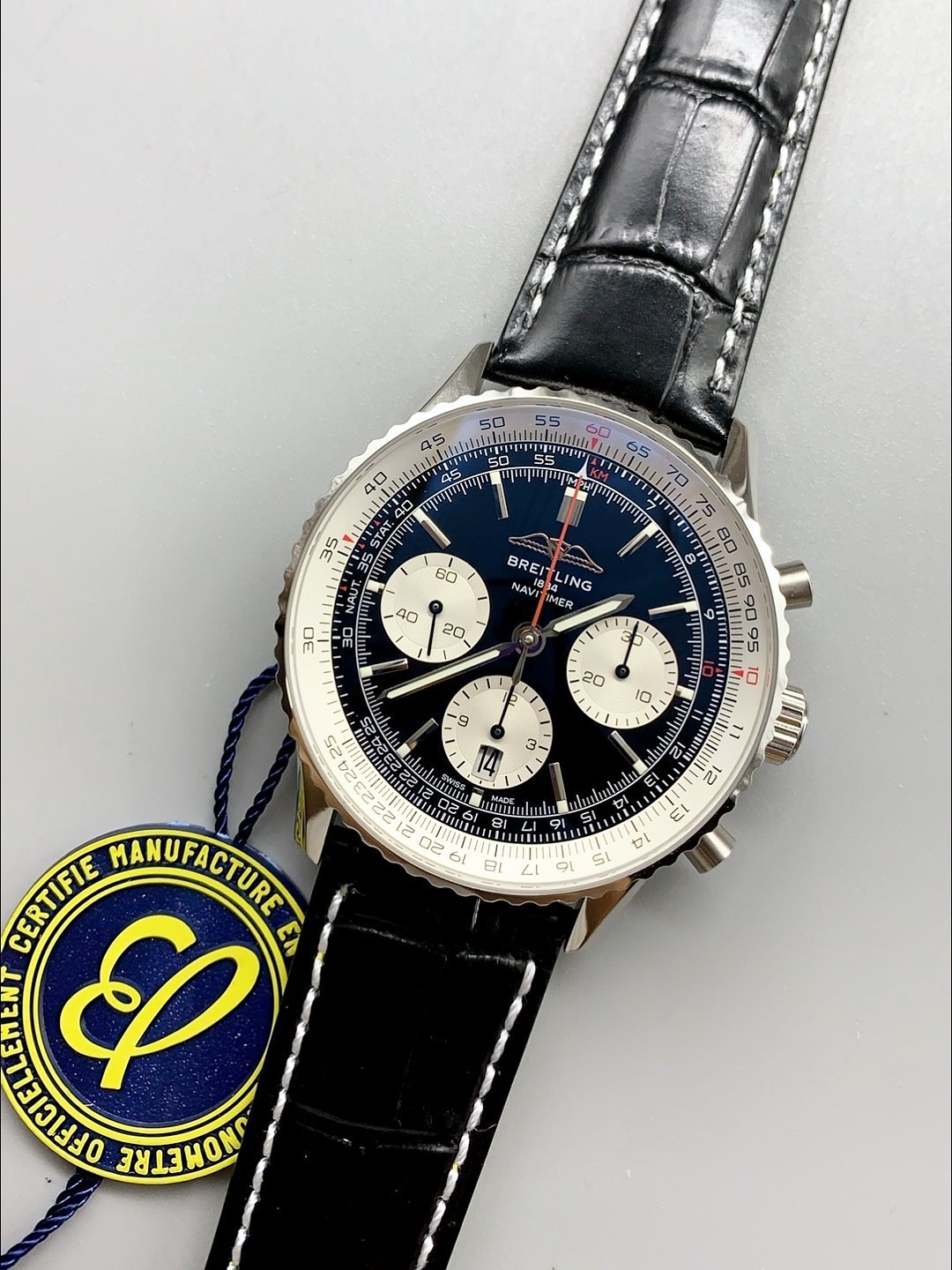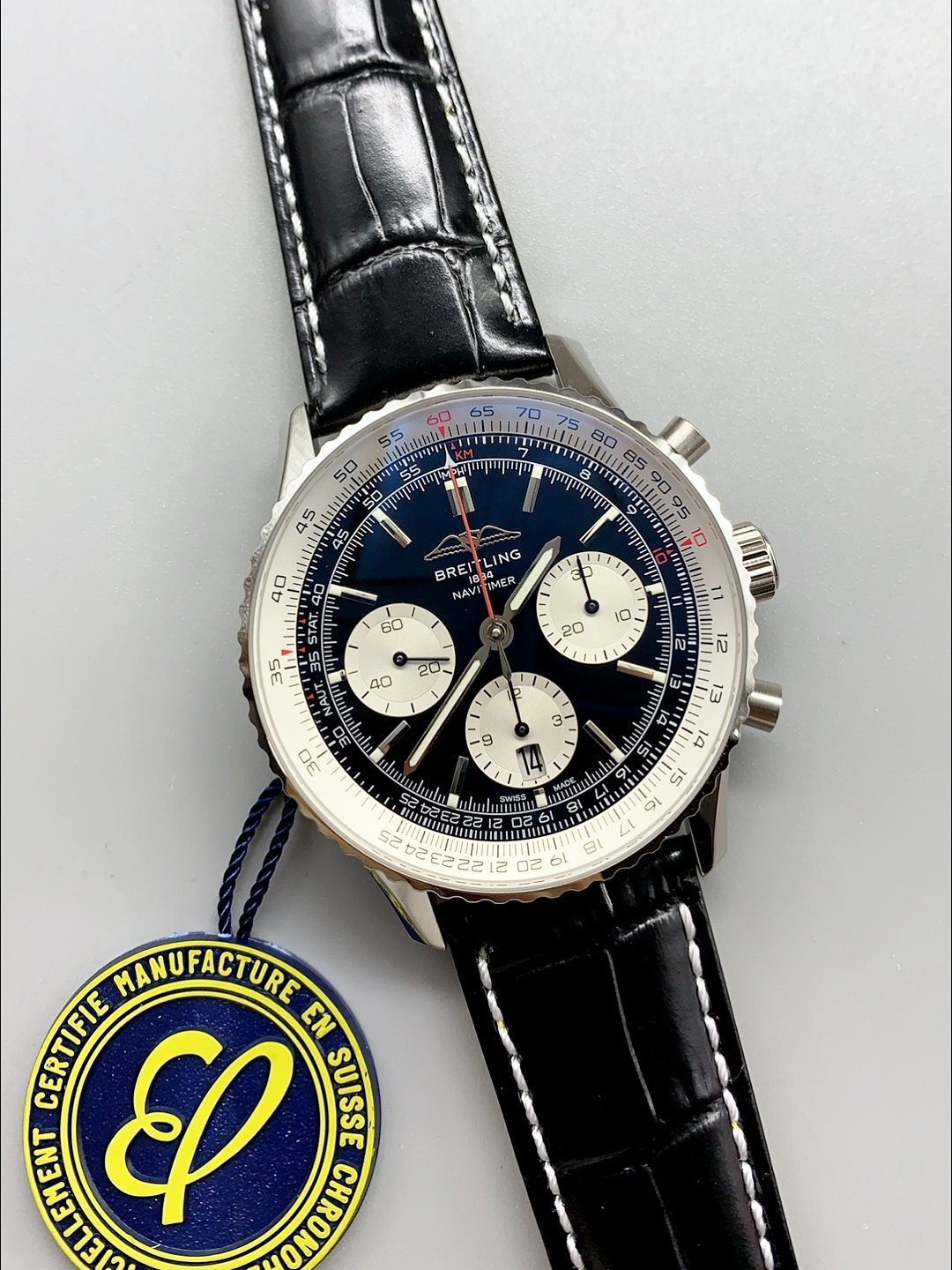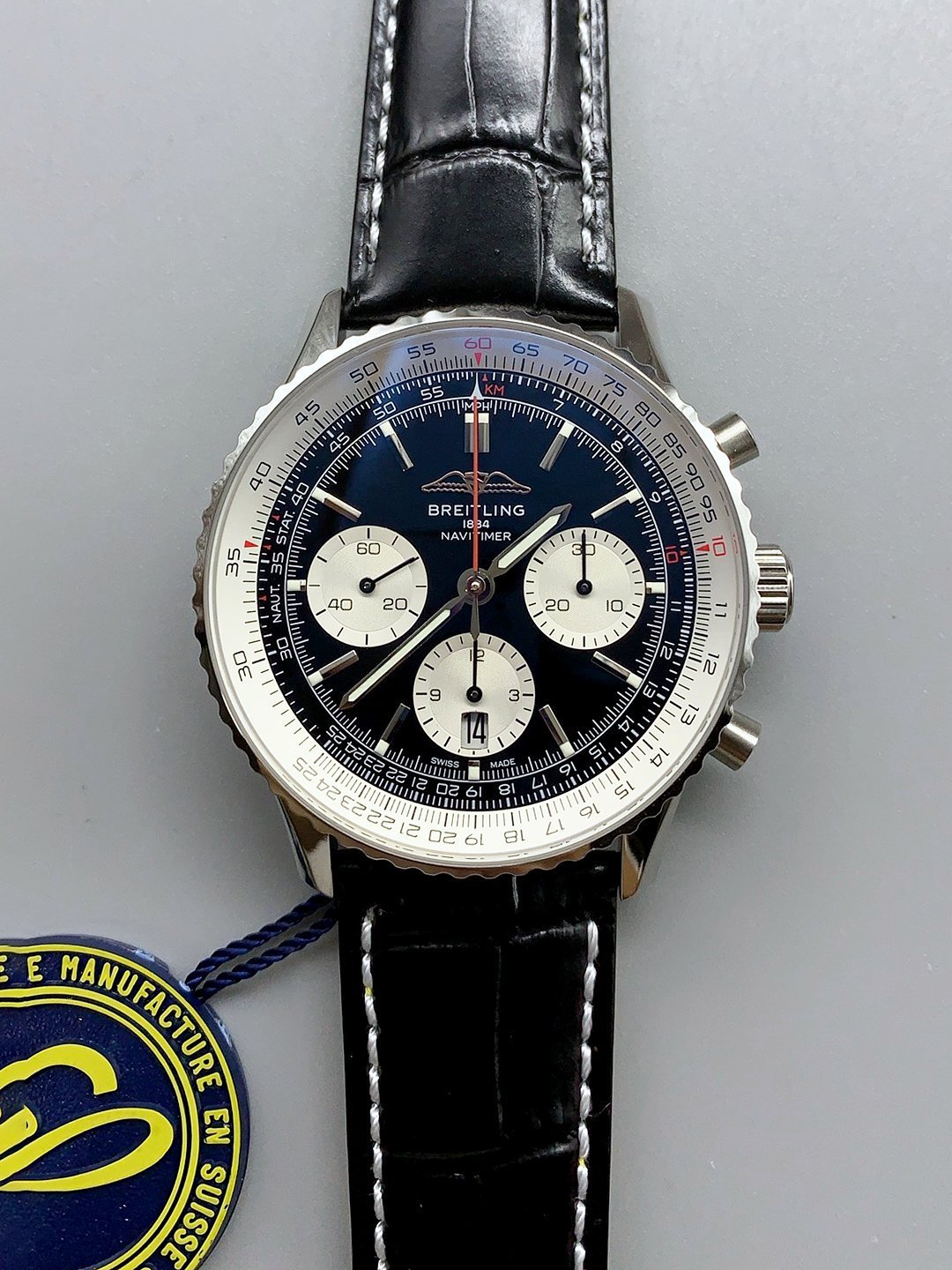 Breitling Navitimer B01 Chronograph 43 Black Dial – 904L Steel Casing 1:1 Mirror Swiss Replica