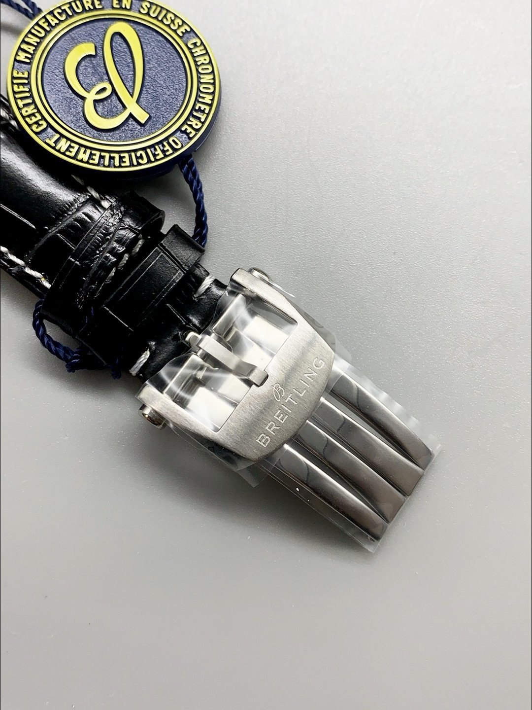 Genuine Leather Strap with breitling markings and engravings and Folding Clasps as per the original