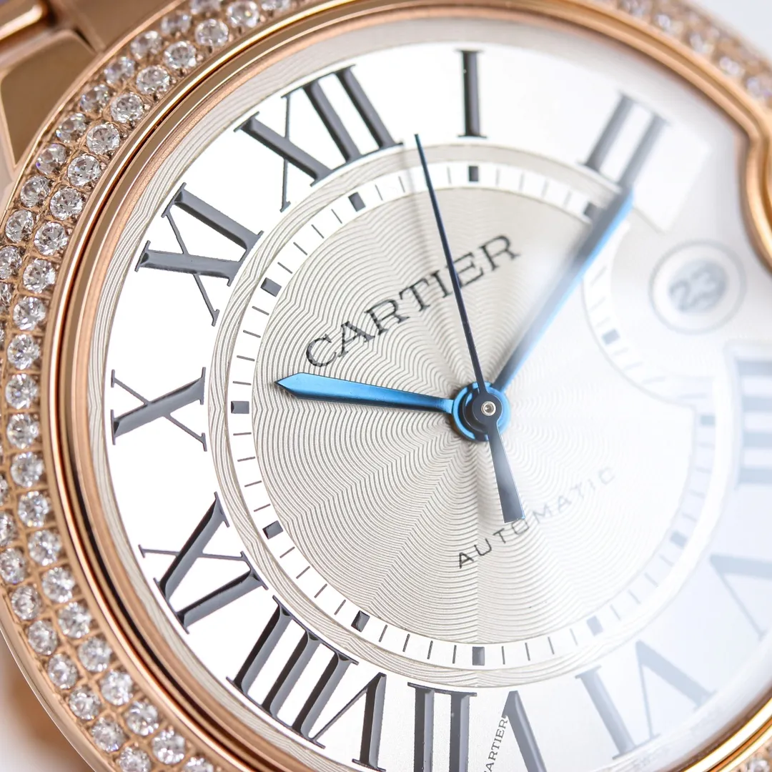 Cartier Ballon Bleu 40 Rose Gold Watch — Premium 1:1 super clone. Case: Stainless steel case, silver-brushed or yellow gold PVD finish. Crystal: Genuine sapphire crystal with AR coating. Movement: Clone Cal. 1847 MC automatic. 12-month movement warranty. Free worldwide shipping on orders over $1,200.