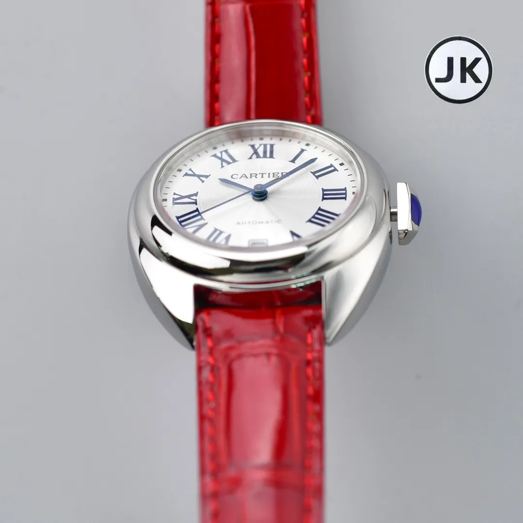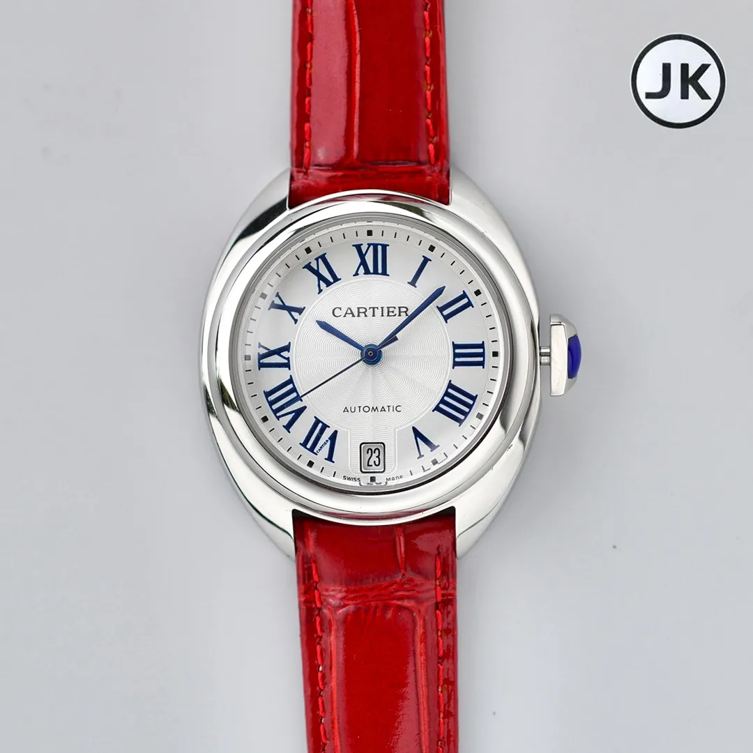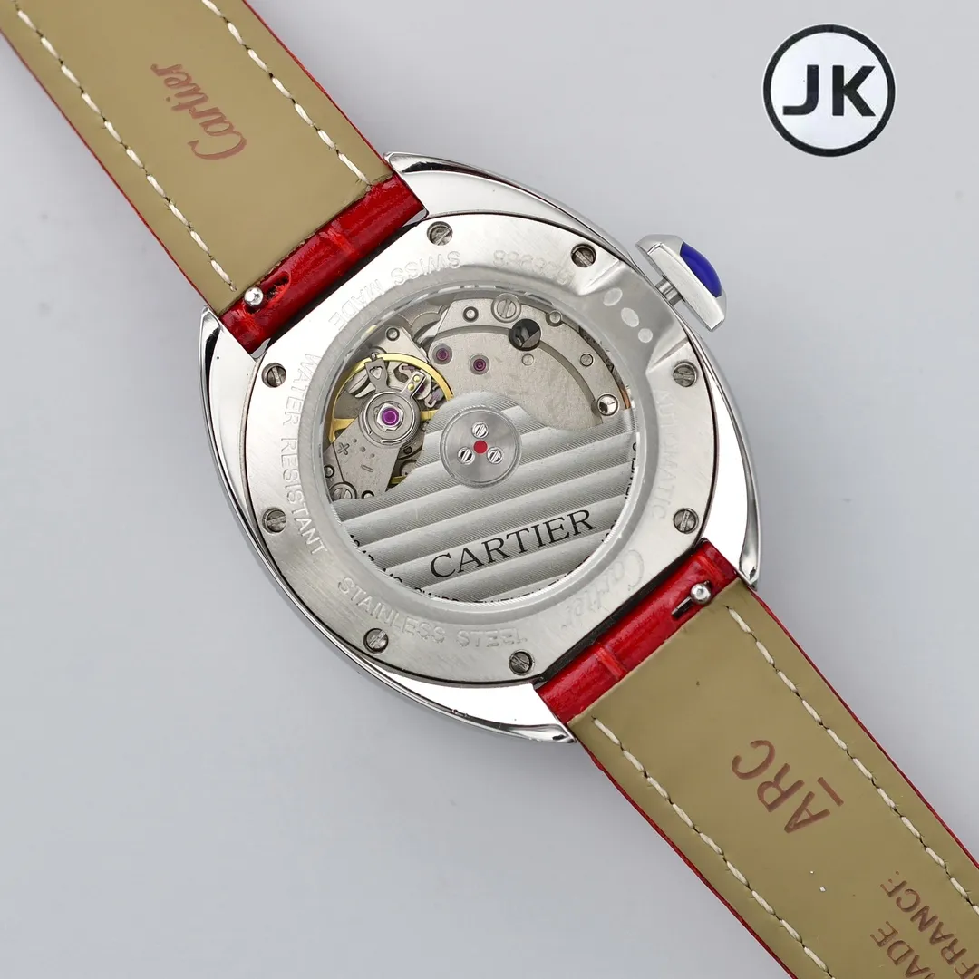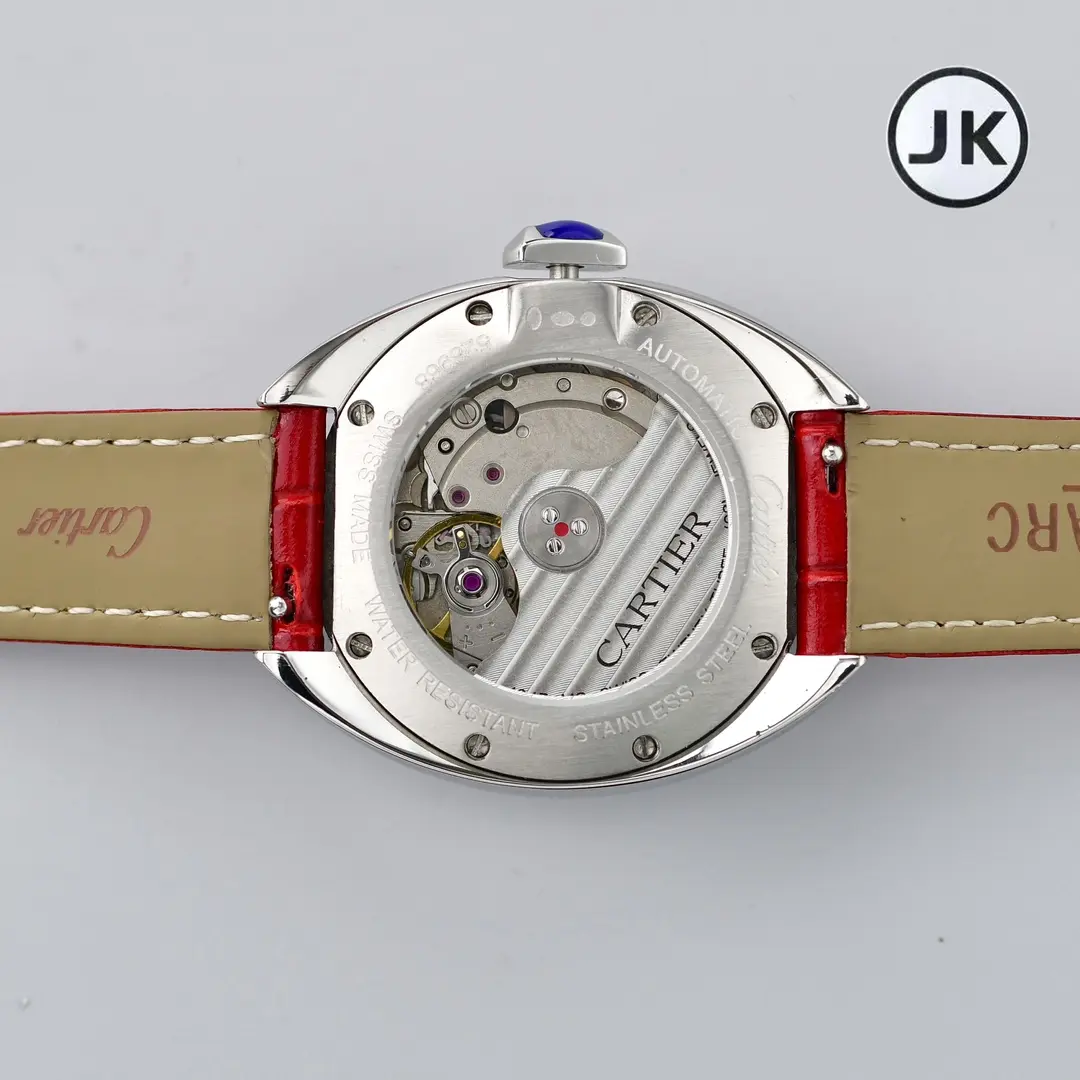 Cartier Cle de Cartier Automatic Red Leather — Premium 1:1 super clone. Case: Stainless steel case, silver-brushed or yellow gold PVD finish. Crystal: Genuine sapphire crystal with AR coating. Movement: Clone Cartier caliber (automatic). 12-month movement warranty. Free worldwide shipping on orders over $1,200.