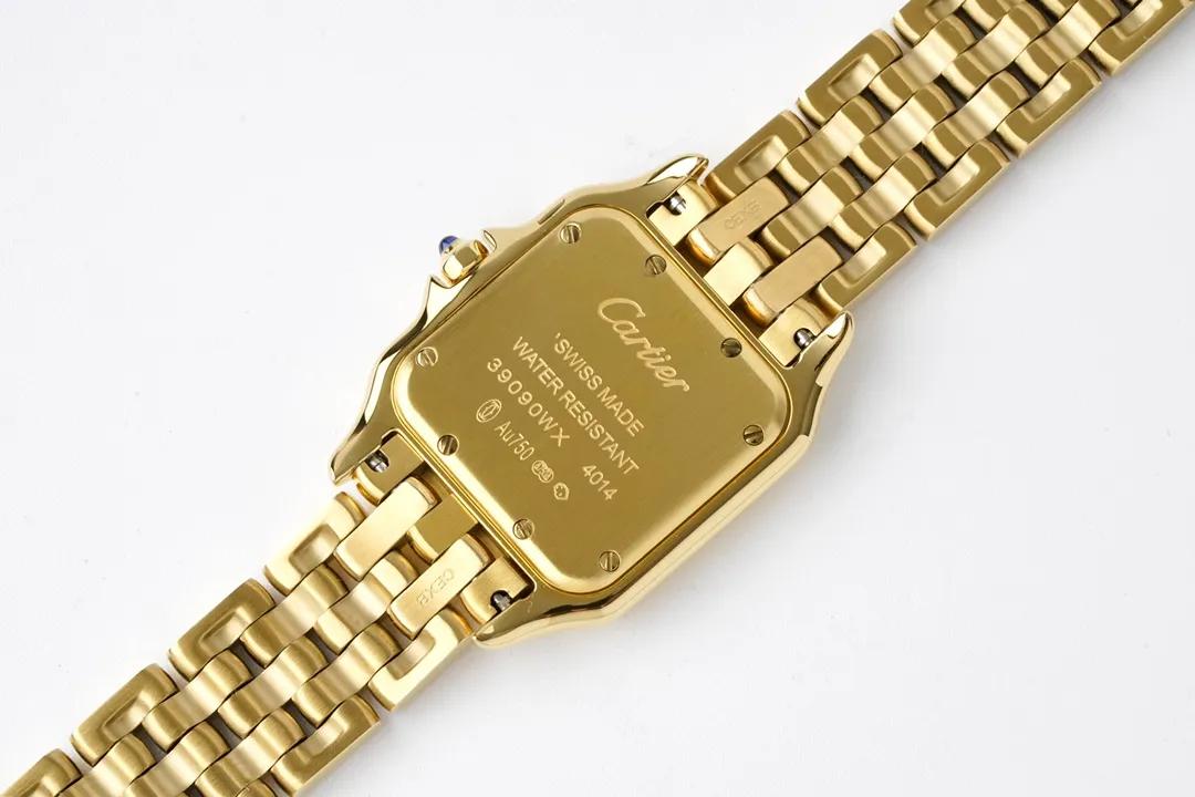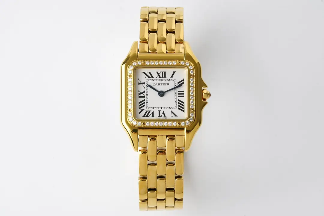 Cartier Panthere de Cartier Watch Gold Style — Premium 1:1 super clone. Case: Stainless steel case, silver-brushed or yellow gold PVD finish. Crystal: Genuine sapphire crystal with AR coating. Movement: Clone Cartier quartz caliber. 12-month movement warranty. Free worldwide shipping on orders over $1,200.