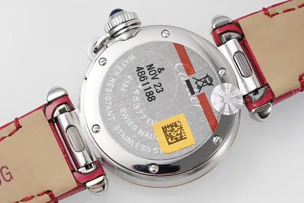 Cartier Pasha de Cartier Ladies Watch Red Leather — Premium 1:1 super clone. Case: Stainless steel case, silver-brushed or yellow gold PVD finish. Crystal: Genuine sapphire crystal with AR coating. Movement: Clone Cal. 1847 MC automatic (28,800 bph). 12-month movement warranty. Free worldwide shipping on orders over $1,200.
