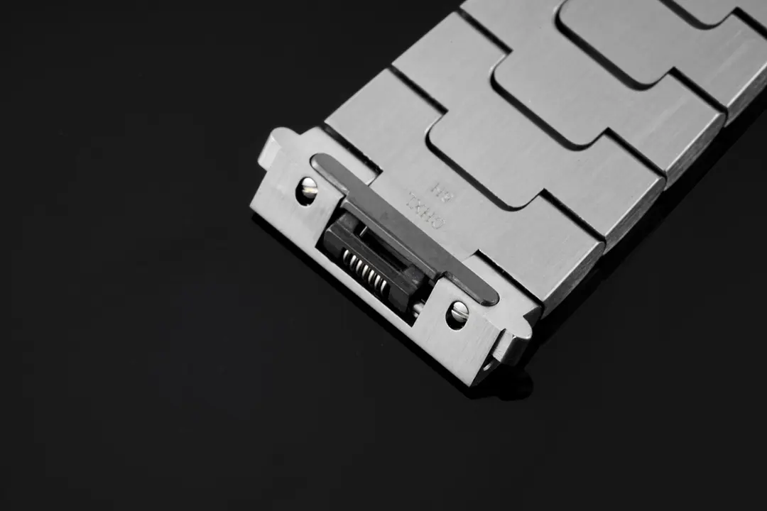• Case Material: Stainless steel with gold and silver. Crown: Seven-sided sapphire-faceted, seven-sided crown. Dial: Sunray dial in white with Roman numerals. Hands: Blue sword-shaped hands. Sapphire crystal: scratch-resistant. Two stainless steel straps are included, one SmartLink and another QuickSwitch. Double-folding clasp for fastening.