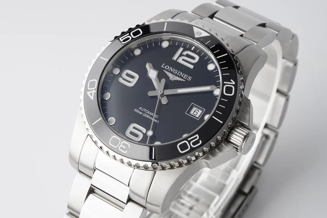 Longines Conquest Black Dial Stainless Steel — Premium 1:1 super clone. Case: 316L stainless steel case and bracelet. Crystal: Genuine sapphire crystal. Movement: Swiss ETA movement (automatic). 12-month movement warranty. Free worldwide shipping on orders over $1,200.