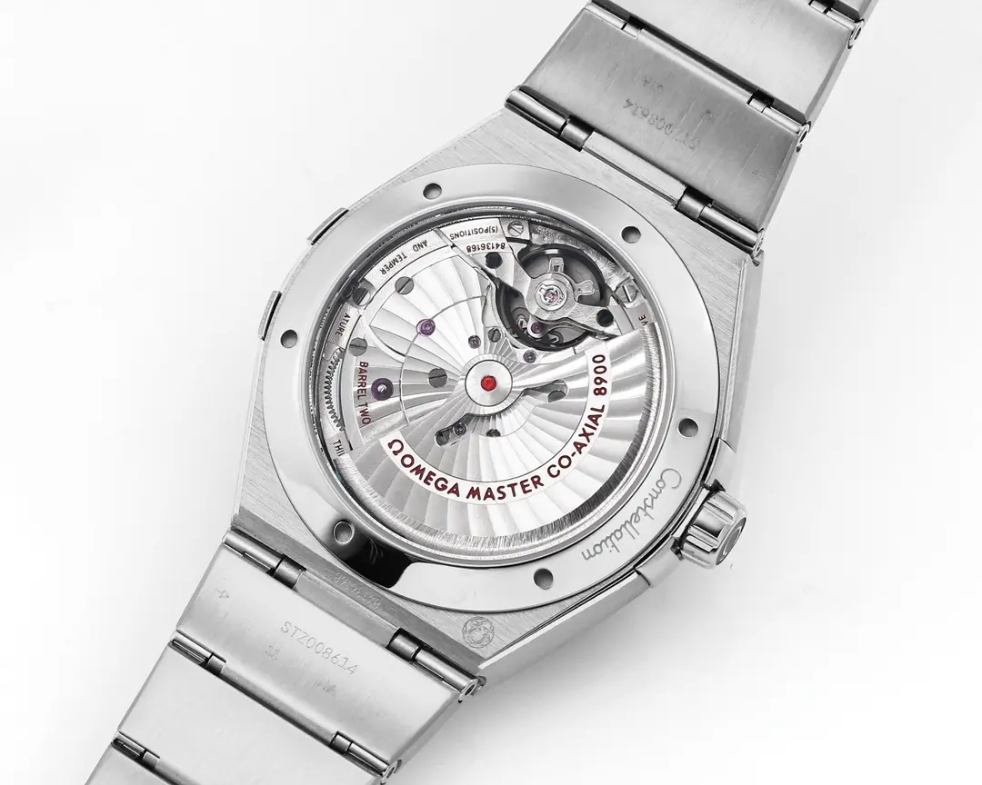 Omega Constellation 41mm Blue Dial Steel — Premium 1:1 super clone. Case: 316L stainless steel case with brushed/polished finish. Crystal: Genuine sapphire crystal with AR coating. Movement: Swiss ETA 2824-2 (28,800 bph, date). 12-month movement warranty. Free worldwide shipping on orders over $1,200.