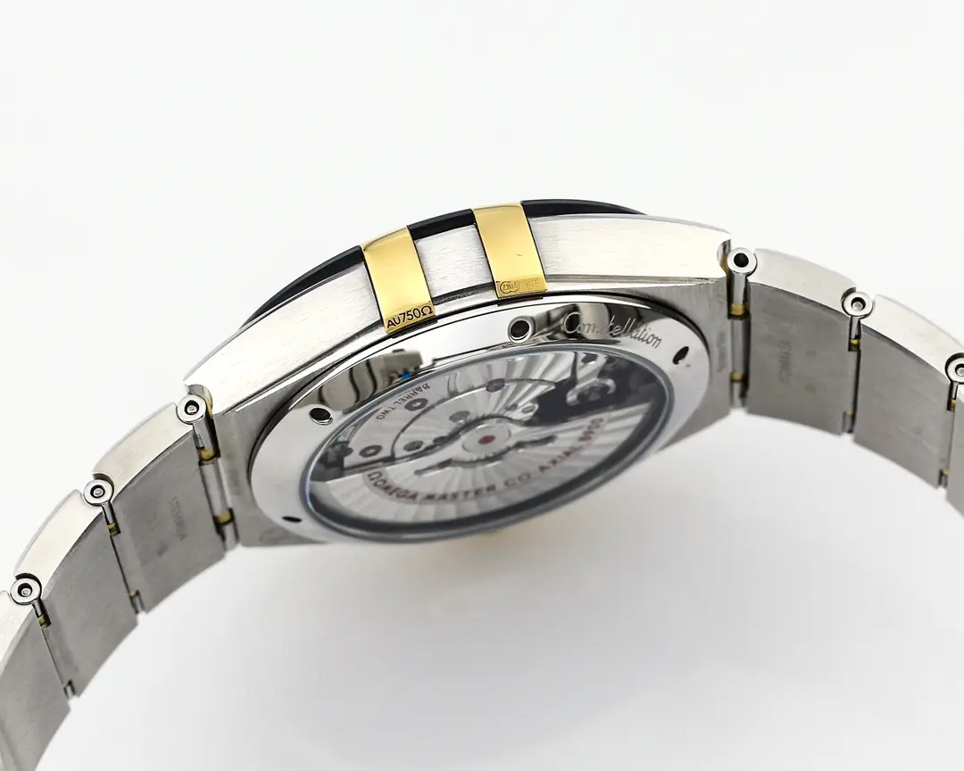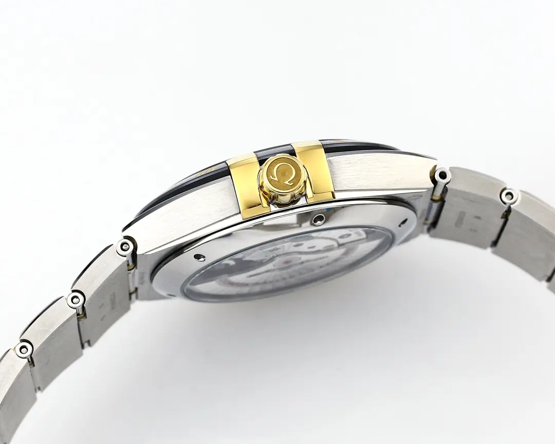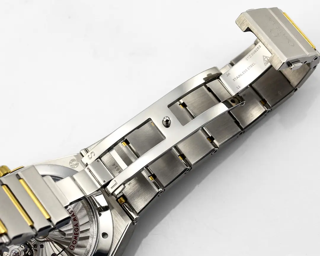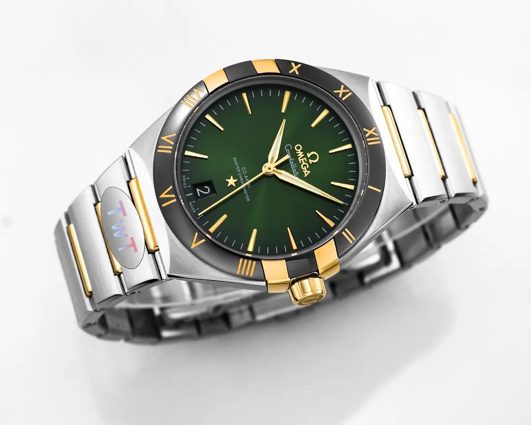 Omega Constellation 41mm Green Dial Steel — Premium 1:1 super clone. Case: 316L stainless steel case with brushed/polished finish. Crystal: Genuine sapphire crystal with AR coating. Movement: Swiss ETA 2824-2 (28,800 bph, date). 12-month movement warranty. Free worldwide shipping on orders over $1,200.