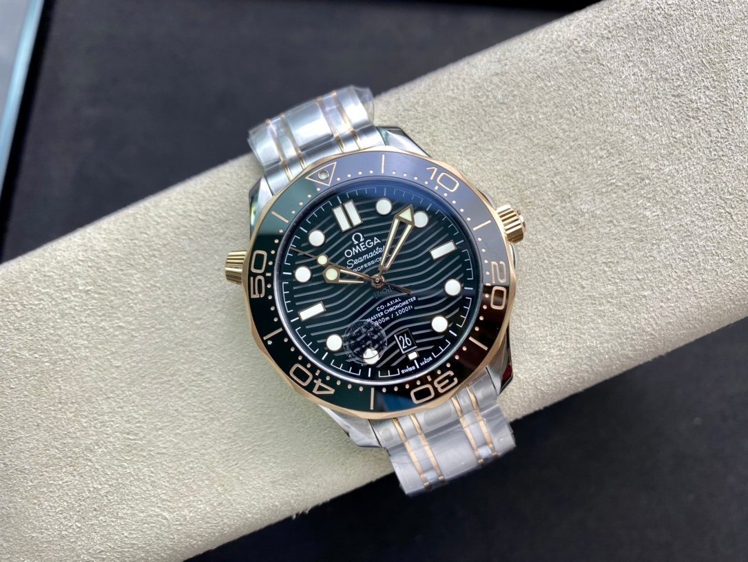 OMEGA Seamaster Diver 300M 42mm Black Dial is a high-quality 1:1 Superclone watch that is very close to the original. It has a 42mm stainless steel case. a gold ceramic bezel. a black dial with wave pattern. and a date window at 6 o'clock. The watch is powered by a Swiss Eta automatic movement that is decorated to look like the Omega Co-Axial Master Chronometer movement. The watch also has a sapphire crystal and a water resistance of 300 meters.