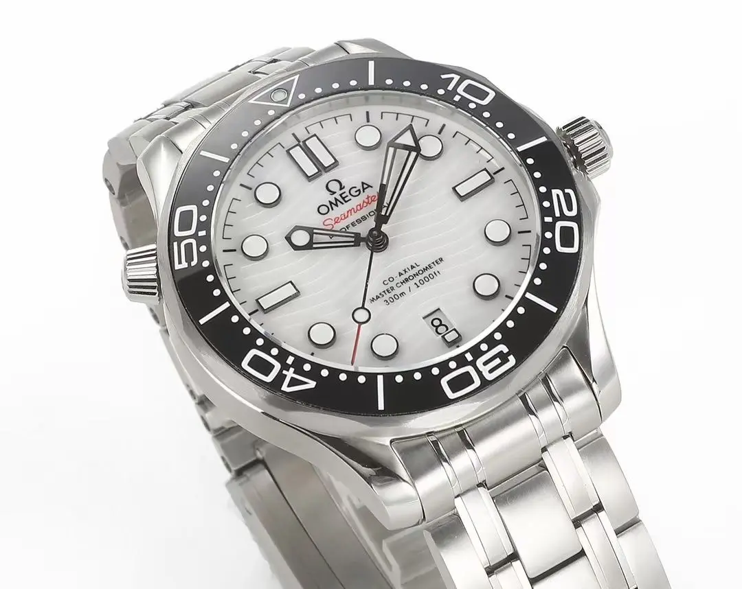 Omega Seamaster Planet Ocean 600m Co-Axial Master Chronometer 42mm Diver’s Watch – Stainless Steel with Black Ceramic Bezel, White Dial by Brand — Premium 1:1 super clone. Case: 316L stainless steel case with brushed/polished finish. Crystal: Genuine sapphire crystal with AR coating. Movement: Swiss ETA 2824-2 or Clone Cal. 8800 (28,800 bph, date). 12-month movement warranty. Free worldwide shipping on orders over $1,200.