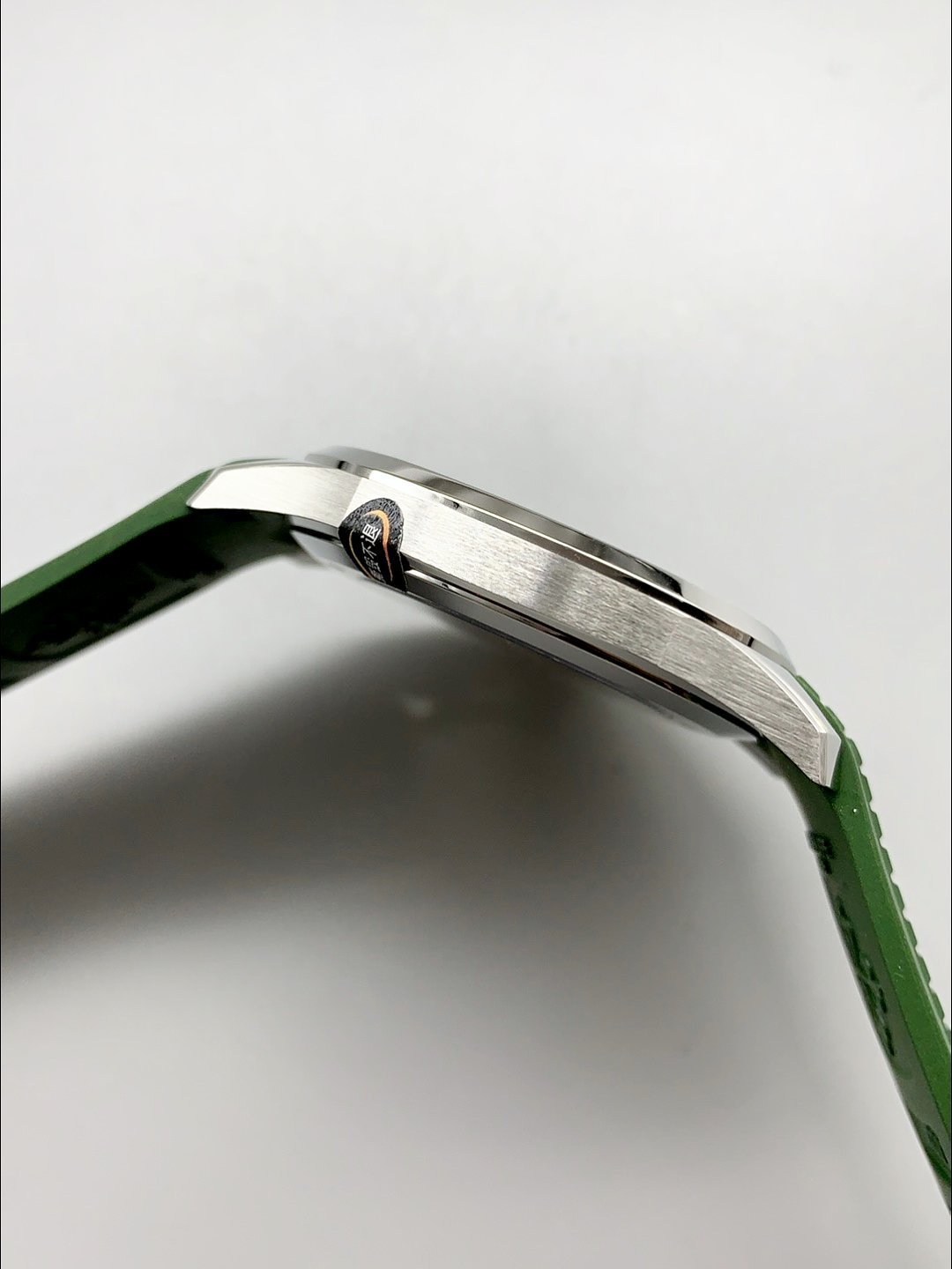 Green Textured Dial with Date Window at 3 O’Clock. Date Fonts now match the Originals much closer than previous models