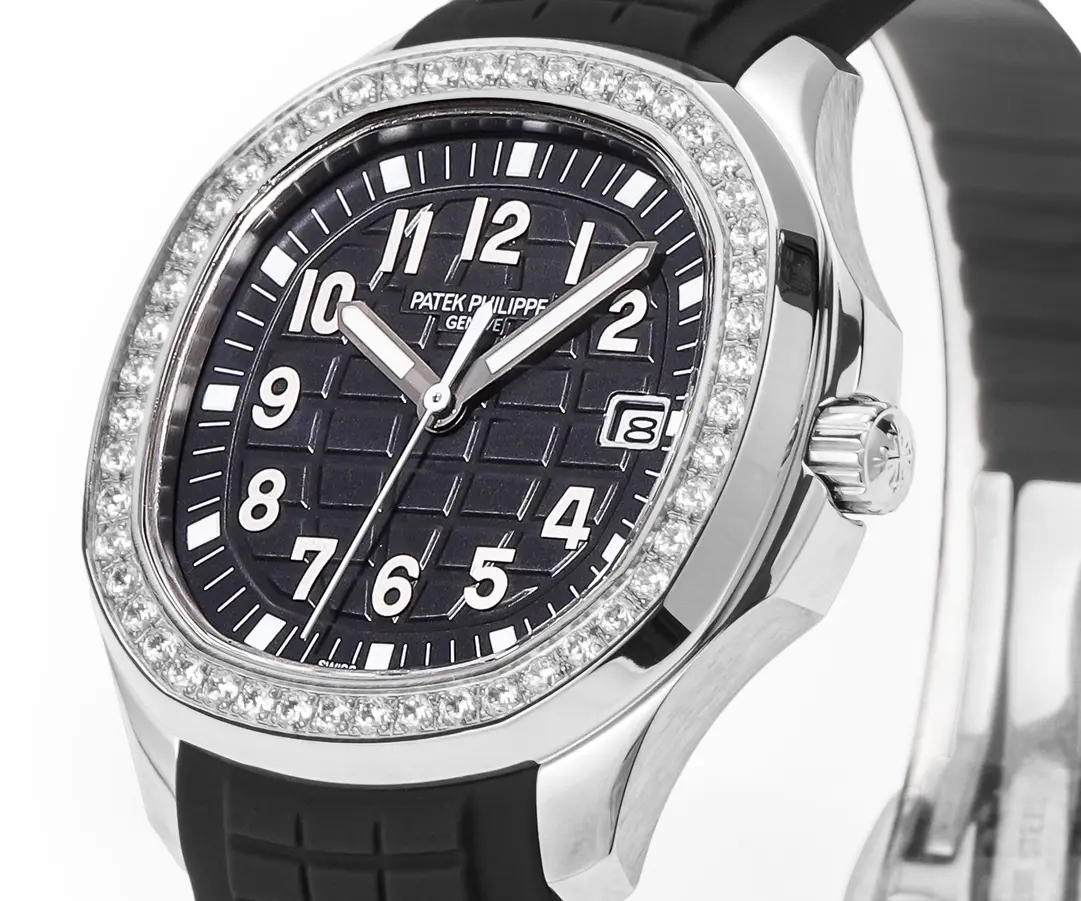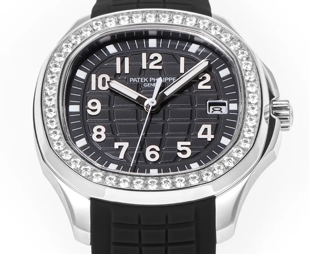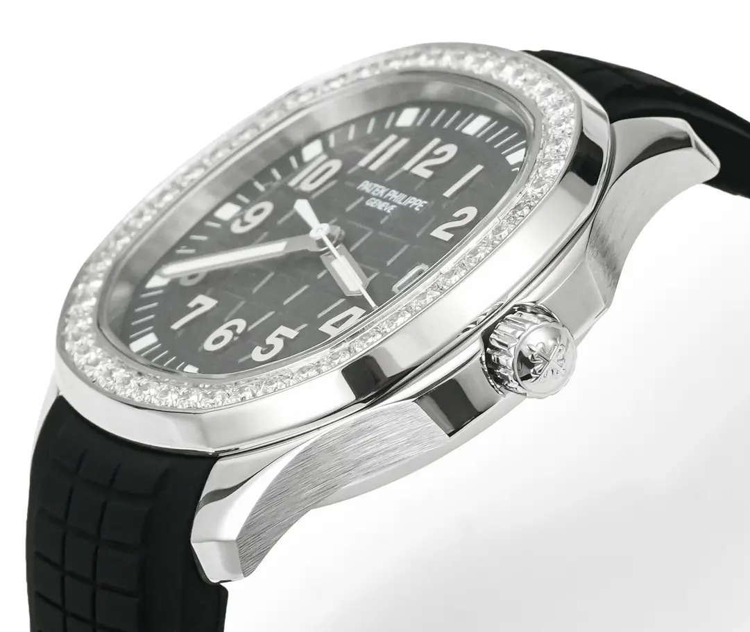 Patek Philippe Aquanaut Luce 5268 Black Rubber — Premium 1:1 super clone. Case: 904L stainless steel or 18k gold case. Crystal: Genuine sapphire crystal with AR coating. Movement: Clone Cal. 5167A (28,800 bph, date). 12-month movement warranty. Free worldwide shipping on orders over $1,200.