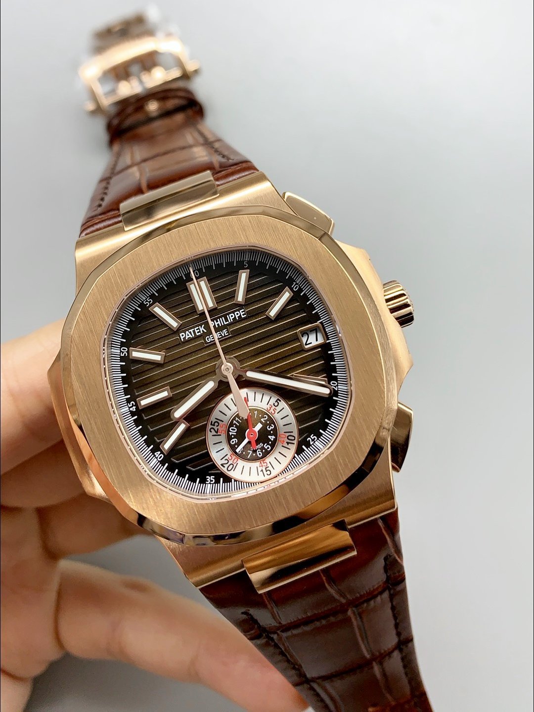 Patek Philippe Nautilus 5980/R Chronograph Rose Gold on 904L Steel Case in Brown Dial – 1:1 Mirror Replica
