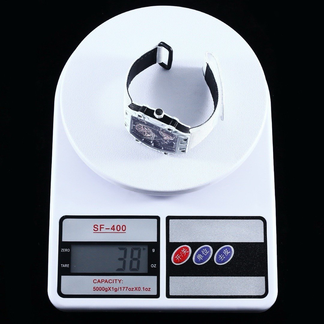 The skeleton dial features a highly articulated V-shaped tourbillon plate and bridge, providing a heart-stopping glimpse of breathtakingly delicate mechanics. More transparent and resistant to glare than ordinary sapphire, the very light PMMA polymer crystal provides maximum legibility. With a white nylon strap, this premium replica Richard Mille is the essence of elegance, power, and technological advancement. Driven by Swiss accuracy movement and featuring 50 meters of water resistance, this AAA replica RM 27-05 is the ultimate expression of style and performance.