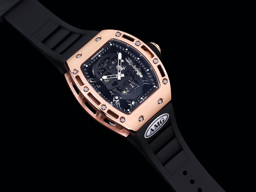 The RM052 Skeleton Tourbillon Replica Watch perfectly blends artistic design with advanced watchmaking craftsmanship. Featuring a bold skull motif set within a sturdy rose gold case, this limited-edition timepiece is a collector’s dream. The skeletonized design with a transparent case back showcases the intricate Swiss movement, highlighting precision and innovation. The aviation steel metal case ensures durability, while the black rubber strap adds comfort and a modern touch. With sapphire glass and 50 meters of water resistance, this Super Clone watch offers both style and functionality. A must-have for those seeking a unique, high-quality luxury replica.