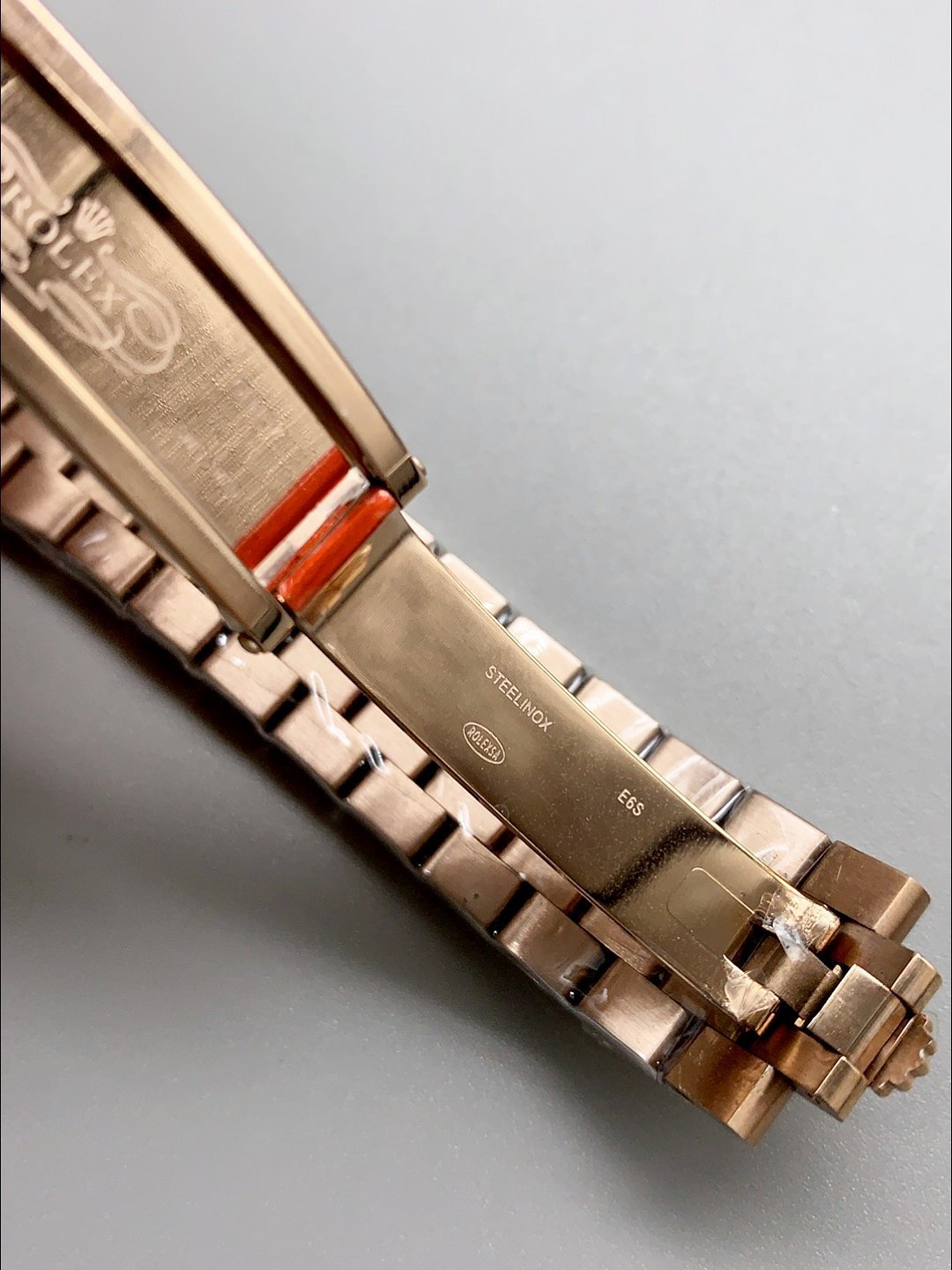 18K Rose Gold Plating on 904L Stainless Steel with Folding Clasp, End links match up Flush with the Case. – A Much Improved Datejust Strap Version