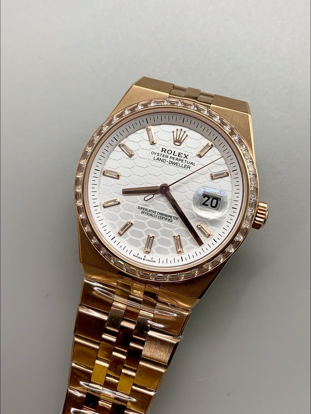RoleRolex Land-Dweller 127335 Steel Honeycomb Rose Gold 40MM(1:1 Super Clone)
