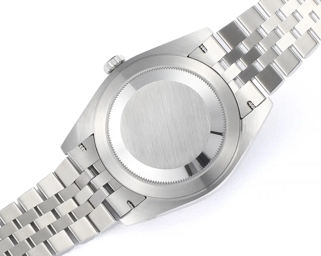 - Stainless Steel Jubilee Band: This watch comes with a stylish and durable stainless steel Jubilee band, which is known for both its comfort and classic look.