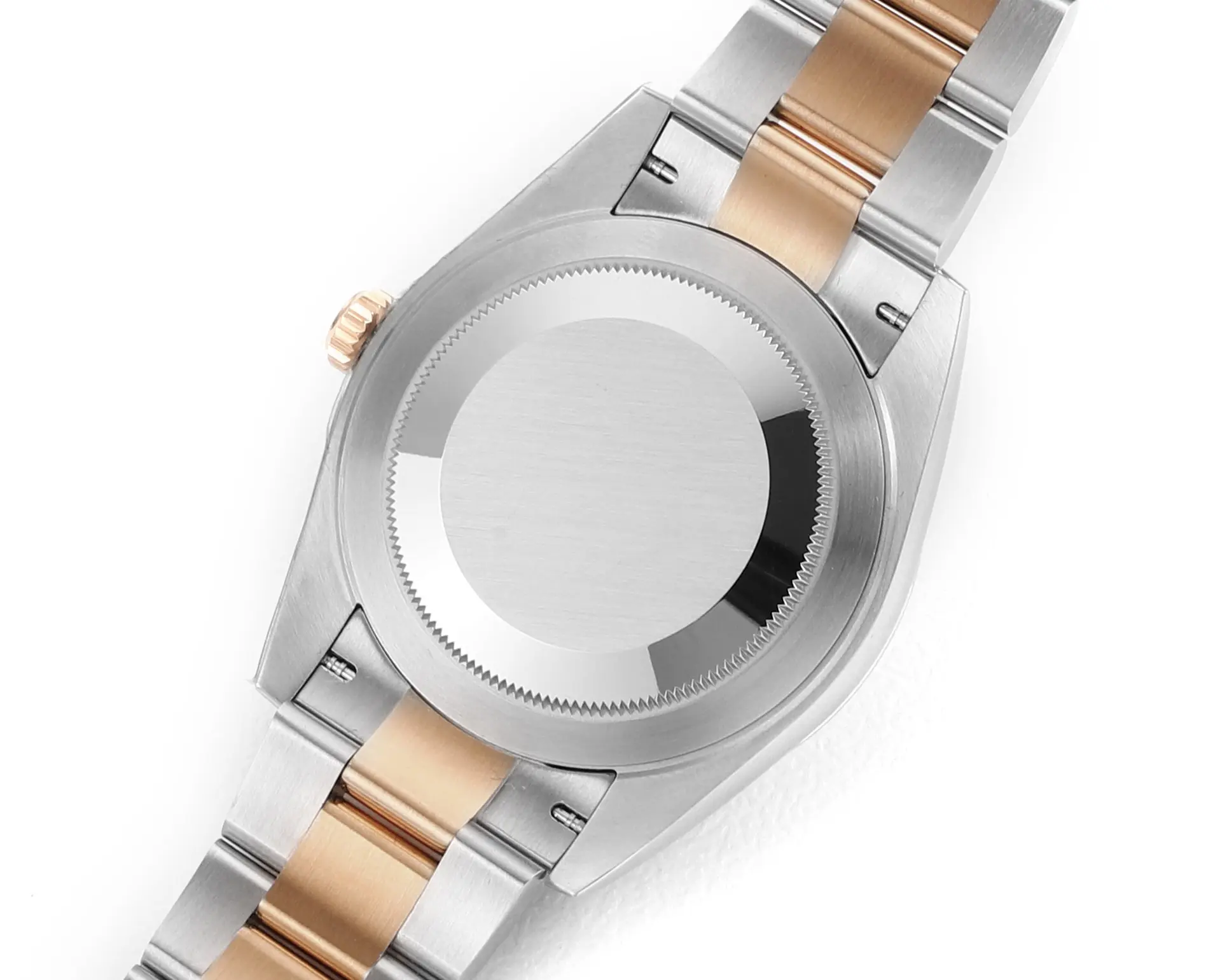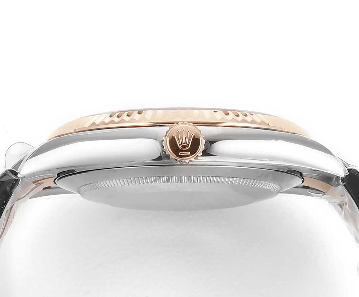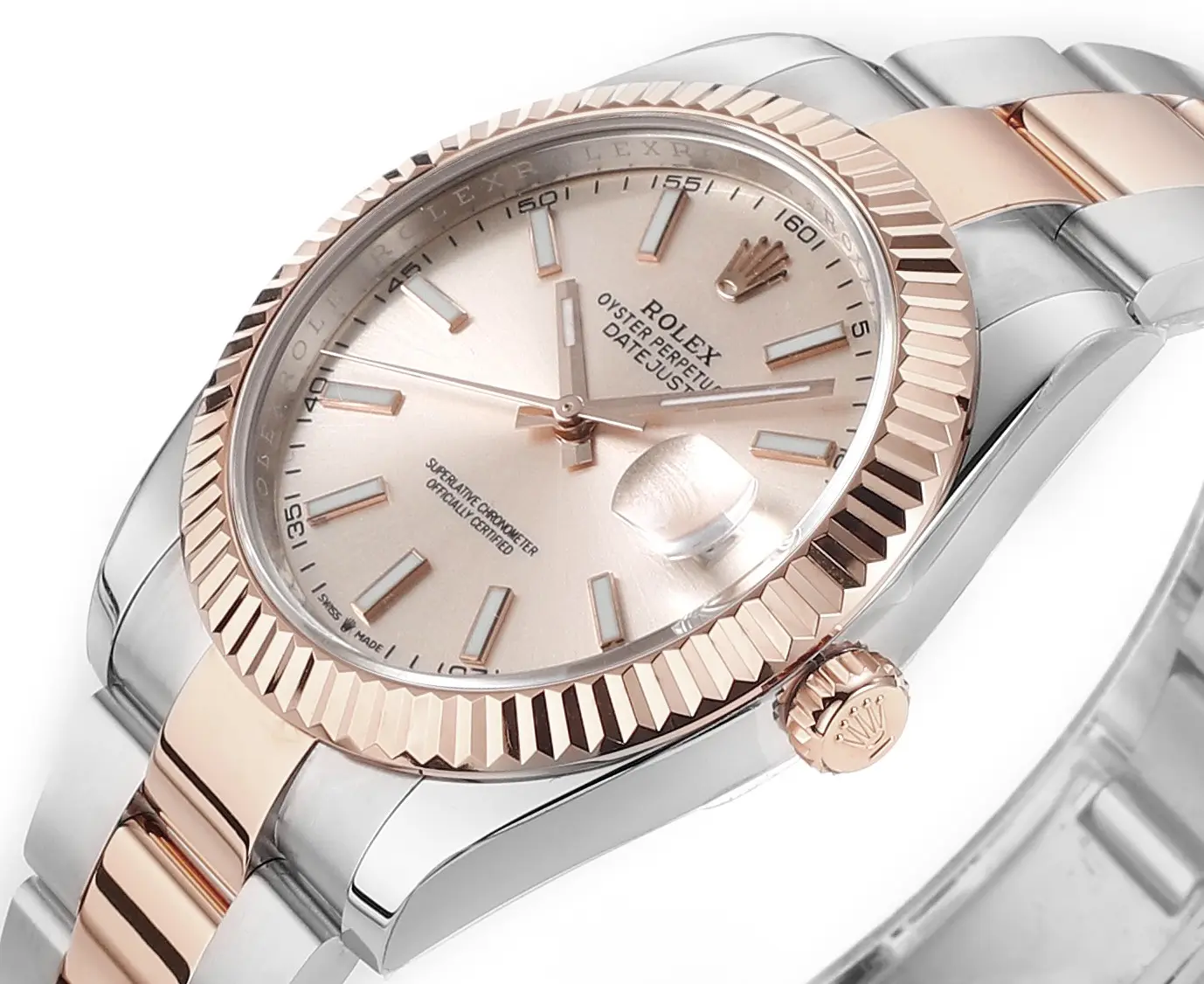 Rolex Datejust 41mm Two-Tone Rose Gold and Stainless Steel — Premium 1:1 super clone. Case: 904L stainless steel case and bracelet. Crystal: Genuine sapphire crystal with AR coating. Movement: Clone Cal. 3235 (28,800 bph, 70hr power reserve). 12-month movement warranty. Free worldwide shipping on orders over $1,200.