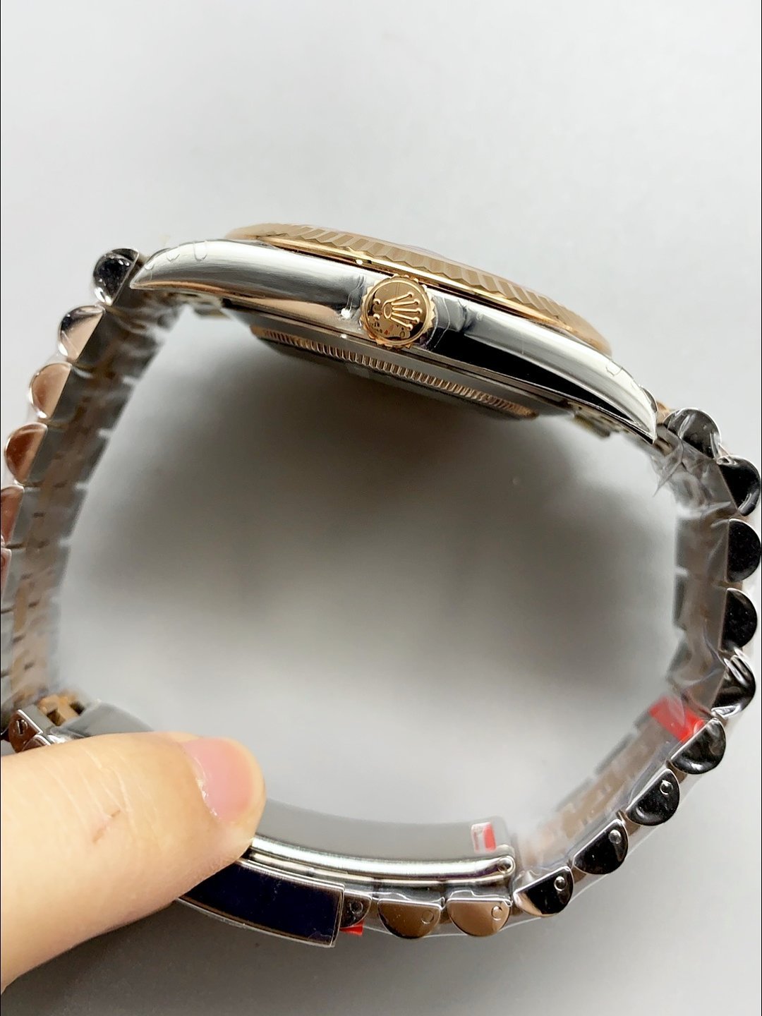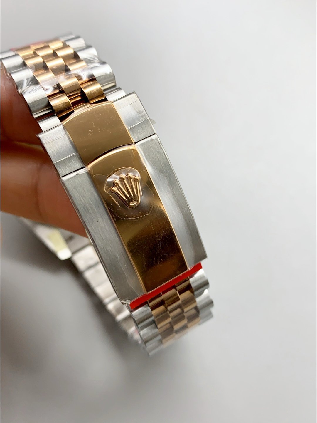 18 Rose Gold Plating on 904L Stainless Steel strap with New Style Rolesor Deployant Buckle, End links match up Flush with the Case. – A Much Improved Datejust Strap Version