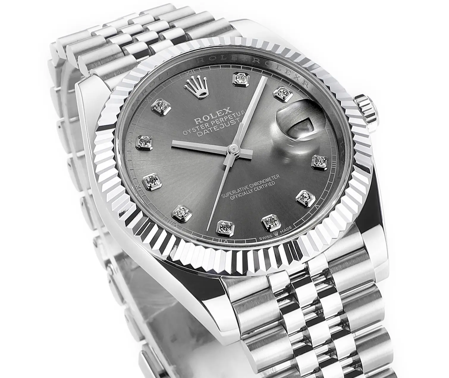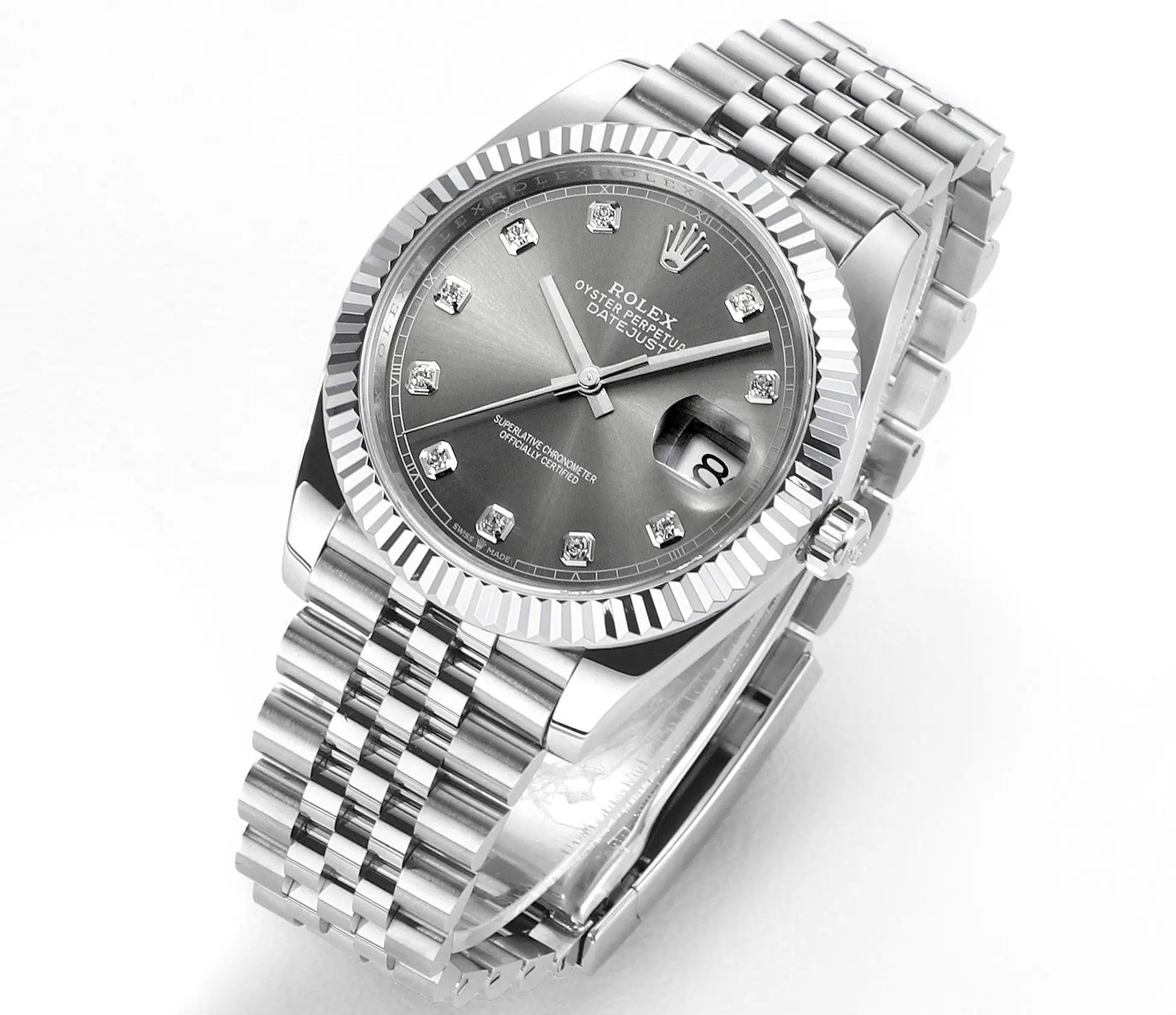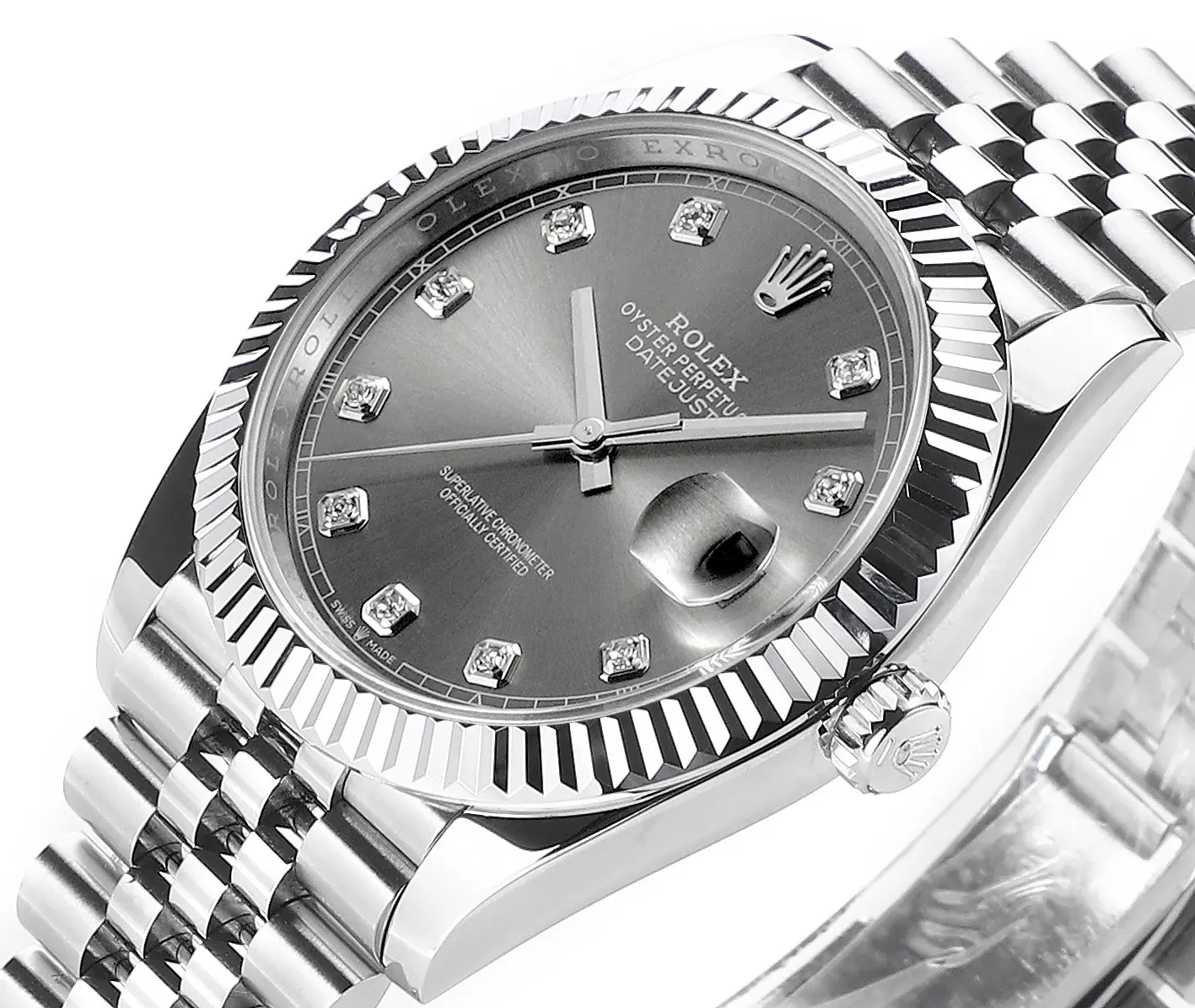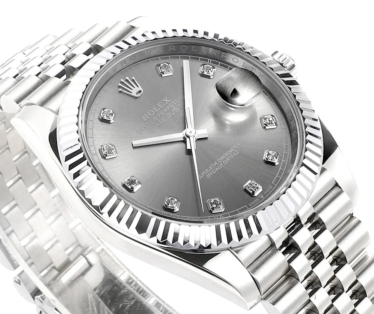 Rolex Datejust 41mm Watch – Silver Dial, Diamond Markers, Stainless Steel Jubilee Bracelet Rolex