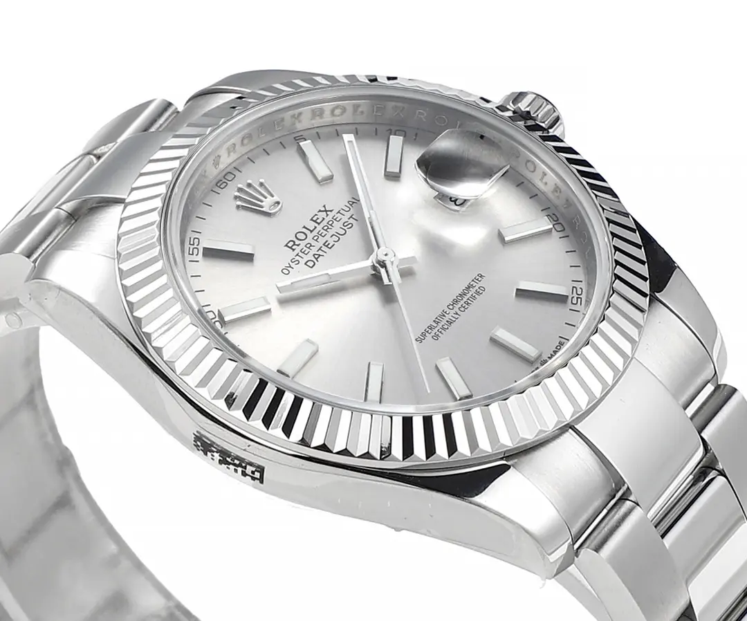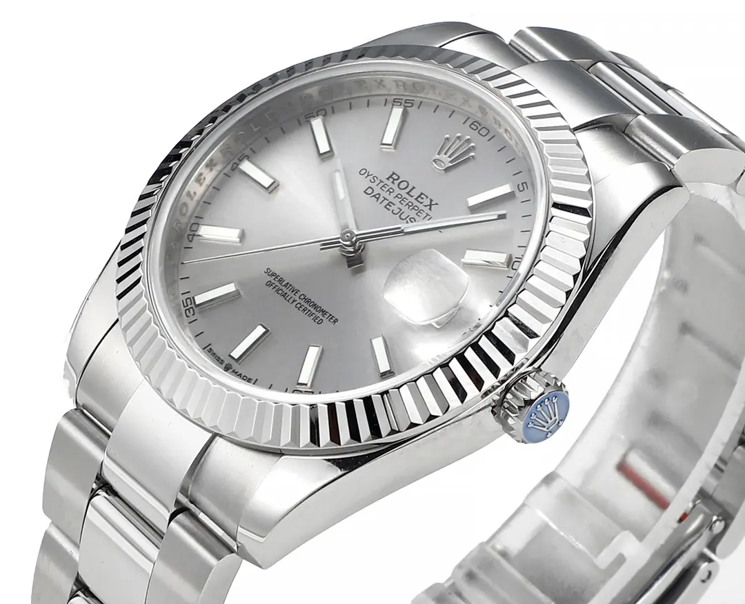 Rolex Datejust with Fluted Bezel and 3235 Movement — Premium 1:1 super clone. Case: 904L stainless steel case and bracelet. Crystal: Genuine sapphire crystal with AR coating. Movement: Clone Cal. 3235 (28,800 bph, 70hr power reserve). 12-month movement warranty. Free worldwide shipping on orders over $1,200.