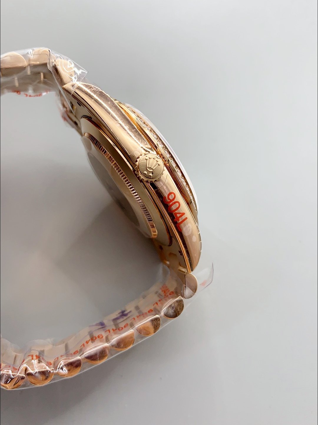 18K Rose Gold Plating on 904L Stainless Steel New Design President Strap with Folding Clasps complete with Rolex Markings and Engravings