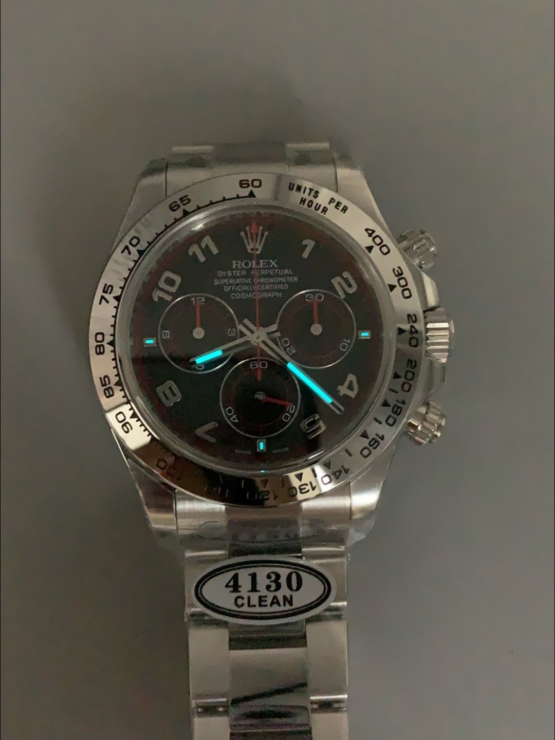 Genuine Cal.4130 Movement built from Scratch with no modifications, Platinum Plating on Rotors and Plates as per the original. The Same movement you find in Rolex Daytona Watches