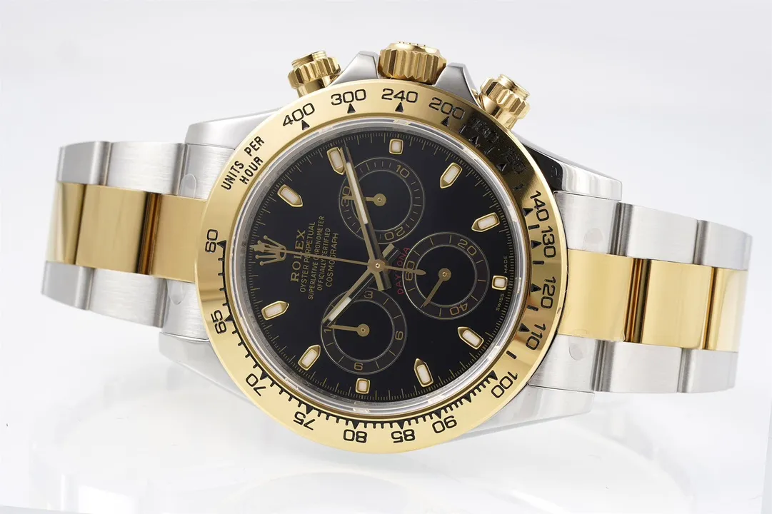 Rolex Daytona 4130 – Two-Tone Gold/Steel, Black Dial, Luxury Chronograph