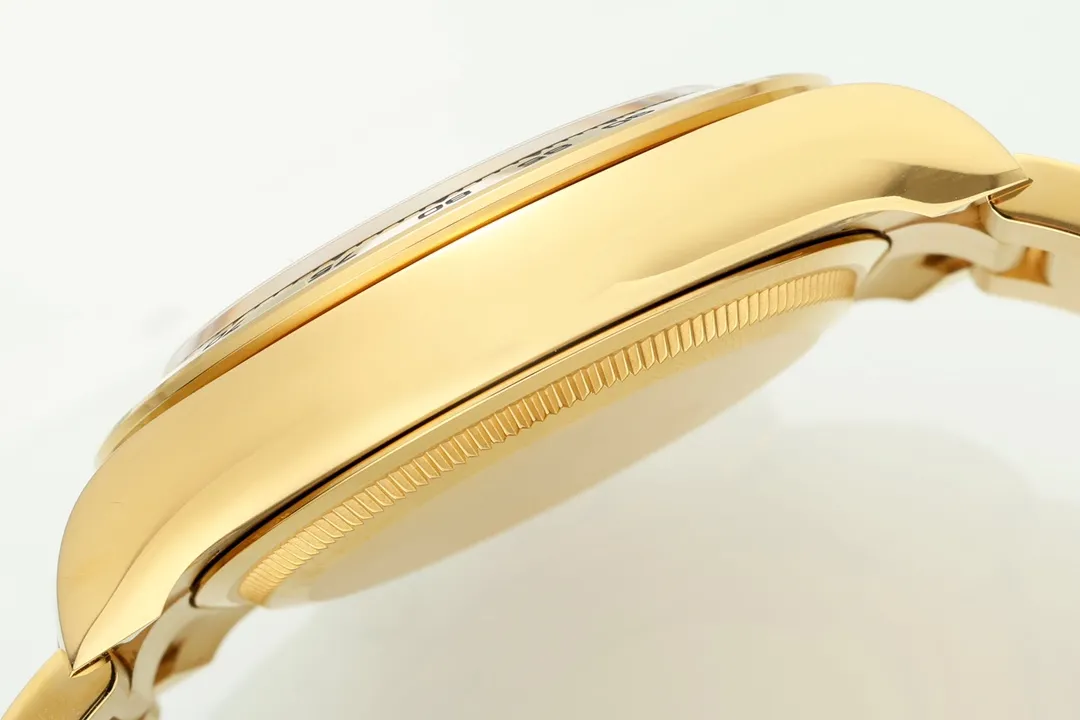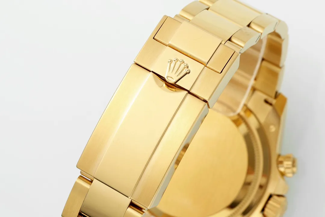 Rolex Daytona 60th Anniversary Edition – Gold Chronograph Watch with Ceramic Bezel and Superior — Premium 1:1 super clone. Case: 904L stainless steel case and bracelet. Crystal: Genuine sapphire crystal with AR coating. Movement: Clone Cal. 4130 (column-wheel flyback chronograph). 12-month movement warranty. Free worldwide shipping on orders over $1,200.