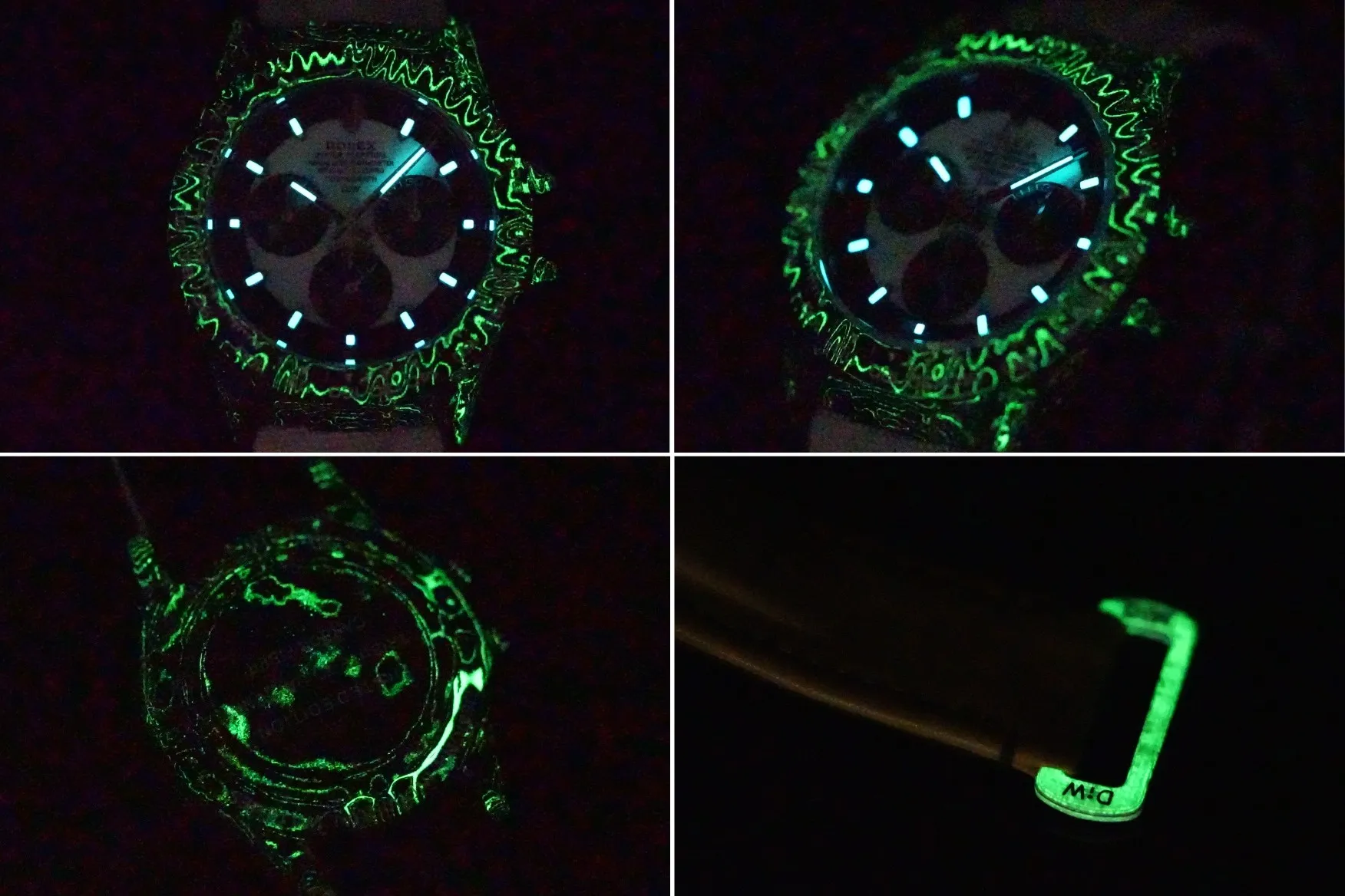 This ROLEX Cosmograph Daytona Custom Edition has a carbon-fiber case and durable fabric strap. This watch combines style with durability, capturing the essence of an exquisite timepiece with a touch of.