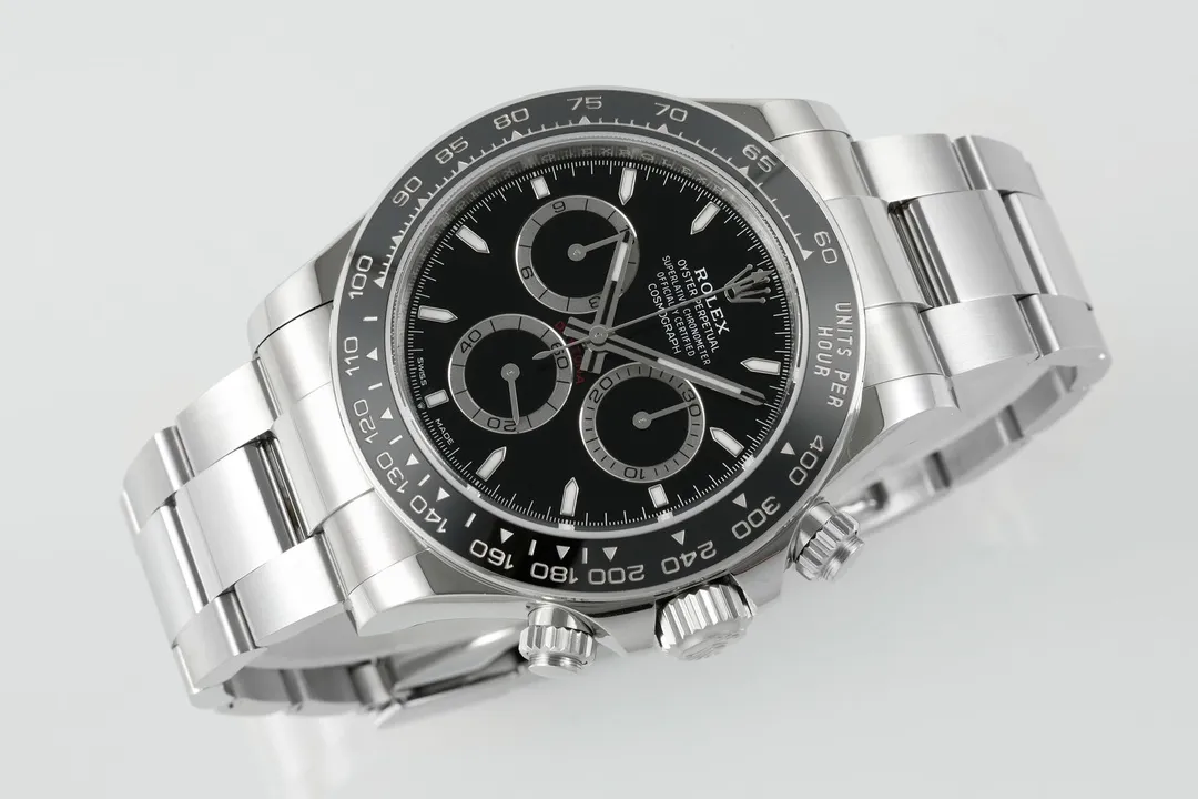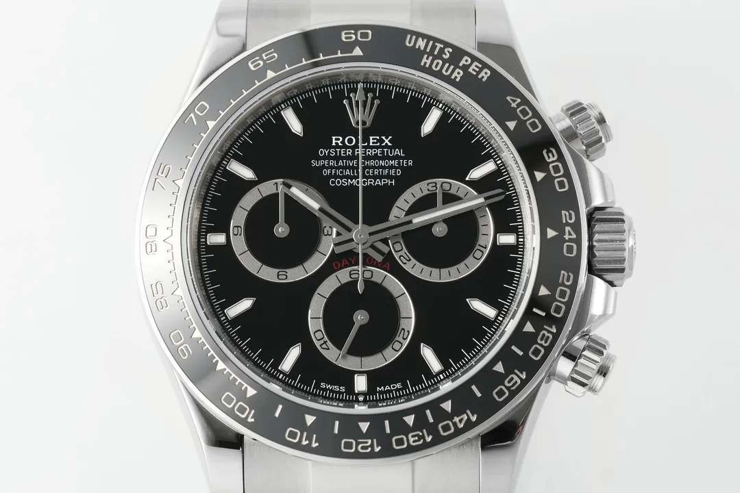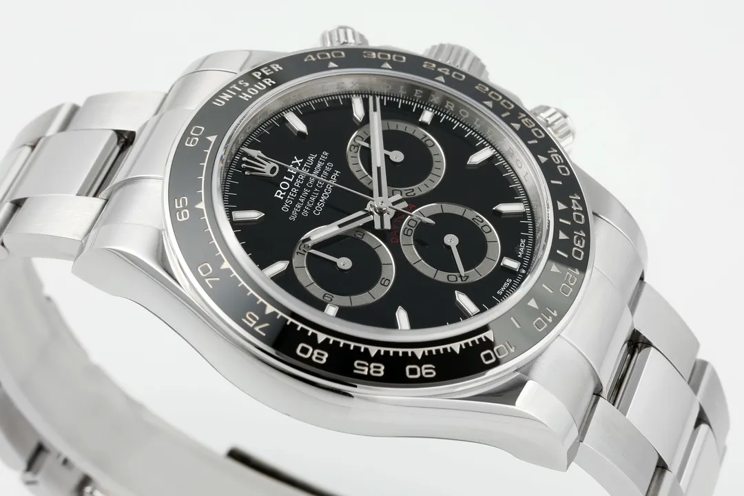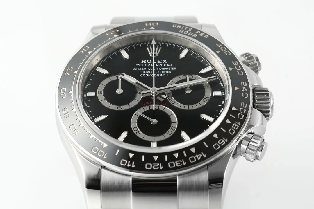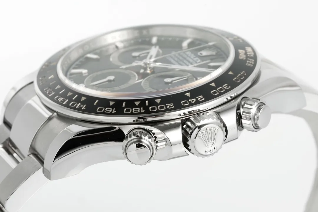 Rolex Daytona M126500LN Perfect Edition – Silver Stainless Steel, Black Dial, Watches Chronograph — Premium 1:1 super clone. Case: 904L stainless steel case and bracelet. Crystal: Genuine sapphire crystal with AR coating. Movement: Clone Cal. 4130 (column-wheel flyback chronograph). 12-month movement warranty. Free worldwide shipping on orders over $1,200.