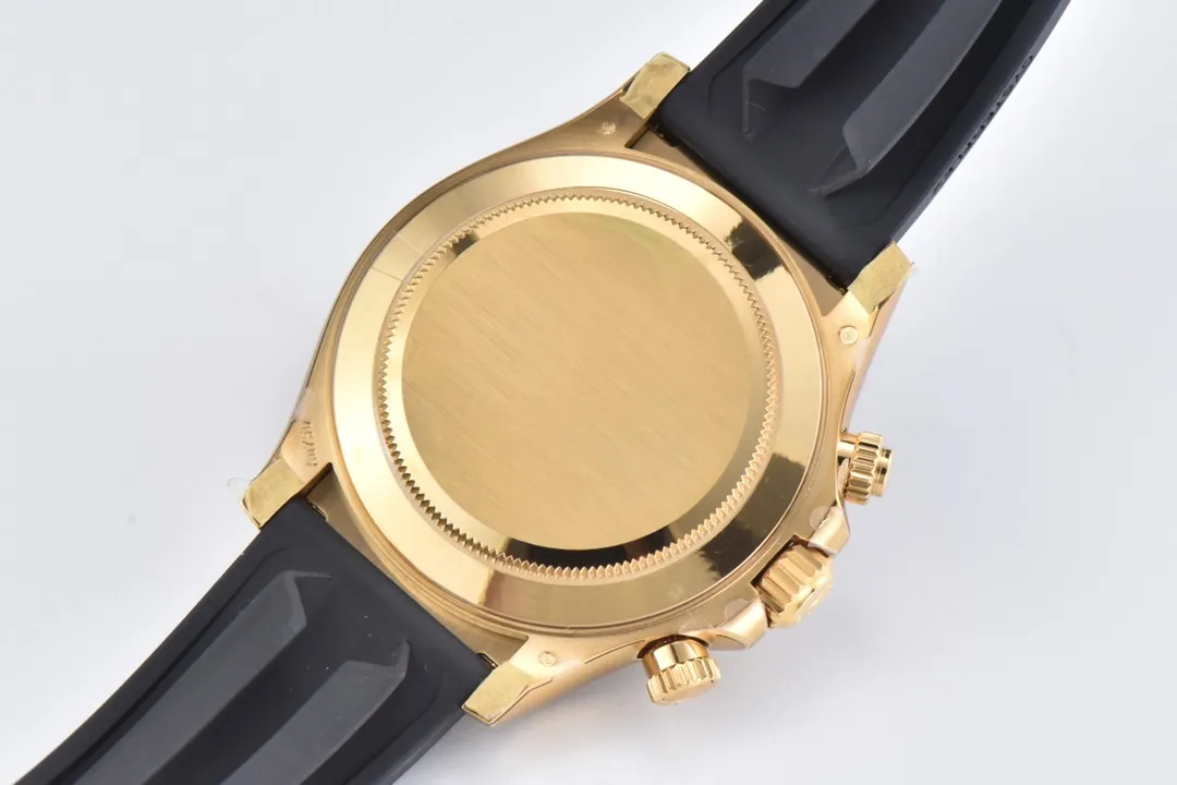 Rolex Daytona Watch with Black Ceramic Bezel — Premium 1:1 super clone. Case: 904L stainless steel case and bracelet. Crystal: Genuine sapphire crystal with AR coating. Movement: Clone Cal. 4130 (column-wheel flyback chronograph). 12-month movement warranty. Free worldwide shipping on orders over $1,200.