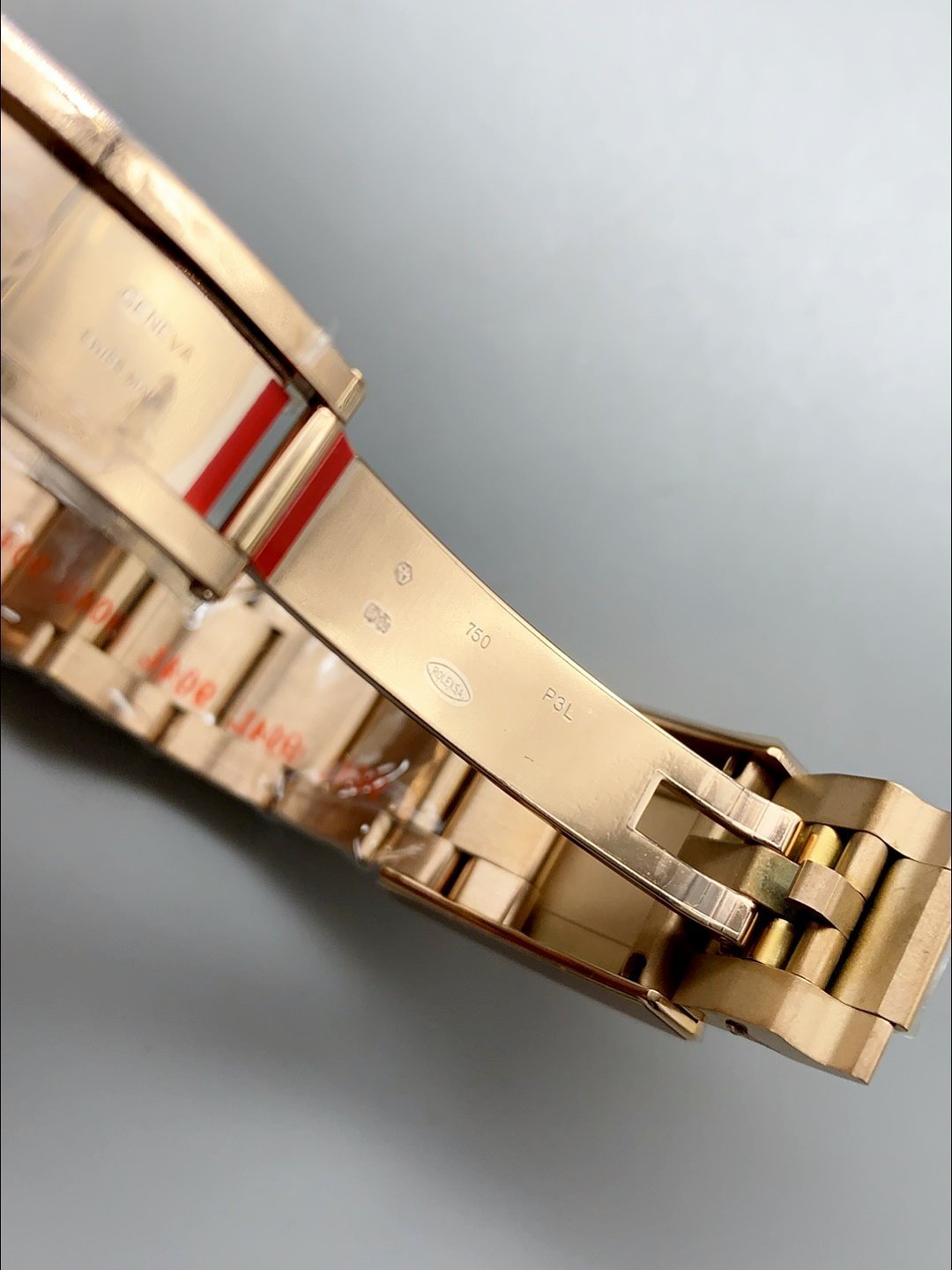 18K Rose Gold Plating on 916L Stainless Steel Strap linked with screws, the best bracelet manufacutred up to date for the GMT Series with Flip Lock Style Clasps complete with Rolex Markings and Engravings. 2MML Lug Spring Bars with rounded heads exactly like the Original GMT Watch Straps.