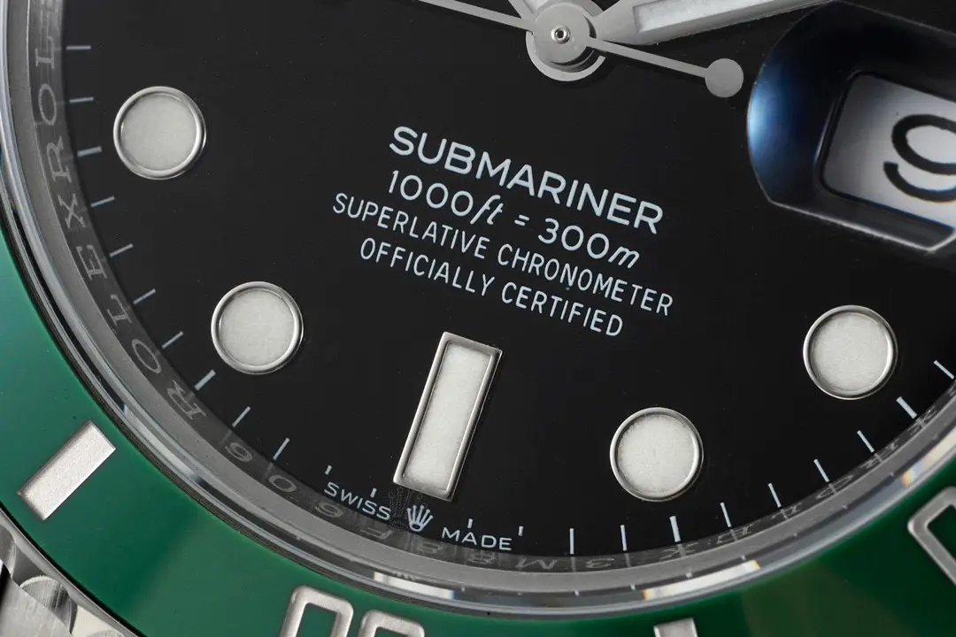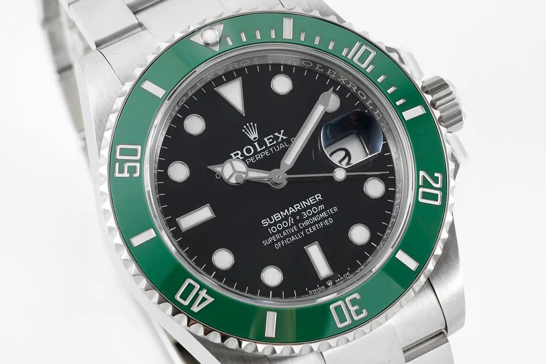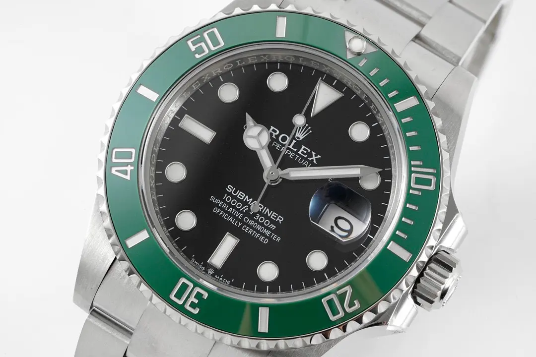 Rolex Submariner 41MM Green Bezel Black Dial Stainless Steel — Premium 1:1 super clone. Case: 904L stainless steel case and bracelet. Crystal: Genuine sapphire crystal with AR coating. Movement: Clone Cal. 3235 (28,800 bph, 70hr power reserve, date). 12-month movement warranty. Free worldwide shipping on orders over $1,200.