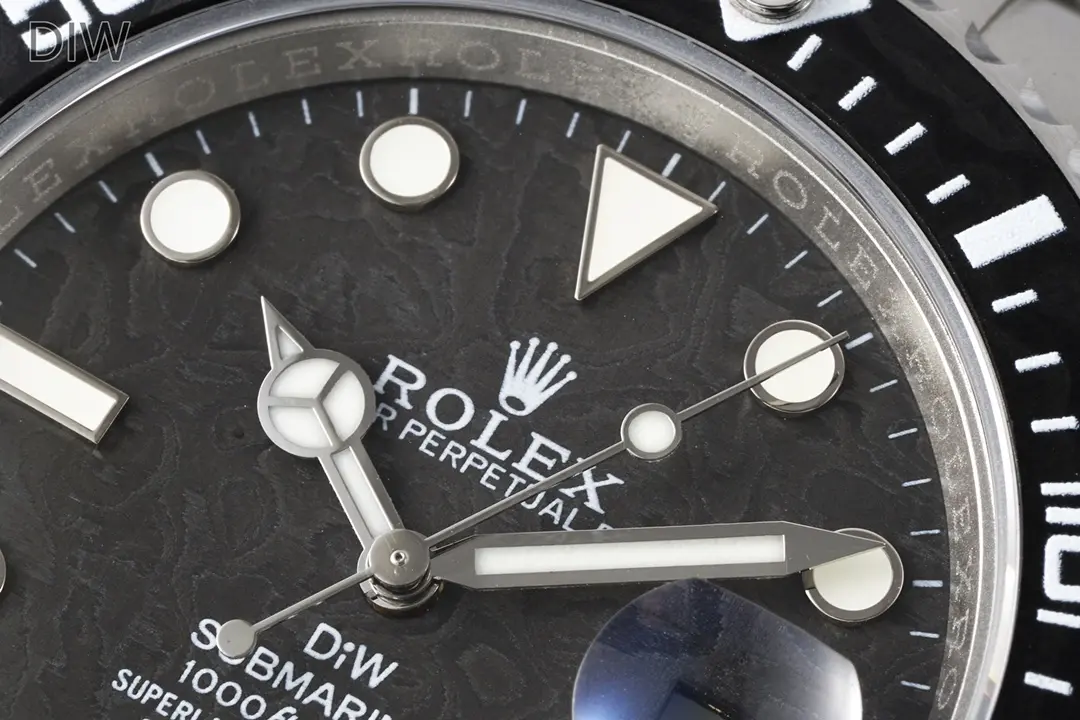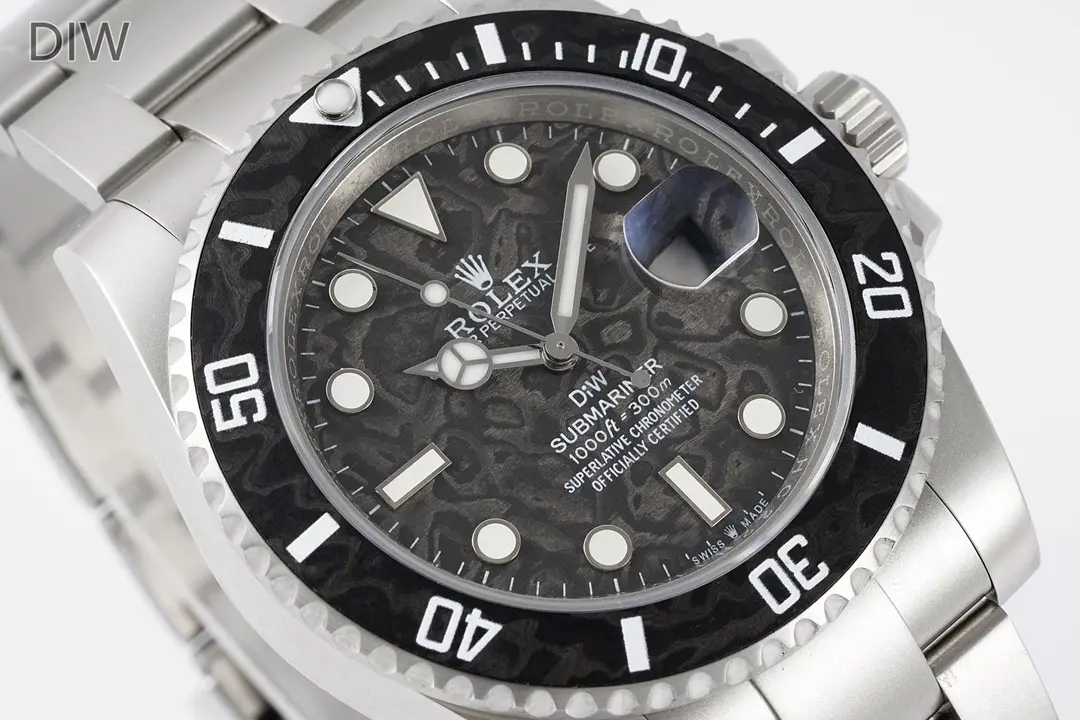 Enjoy the ROLEX DIW Submariner ParAKEET’s unique design with its black carbon fibre dial and construction of 904L stainless Steel. The watch is a combination of distinctive design and reliable performance, crafted as a.