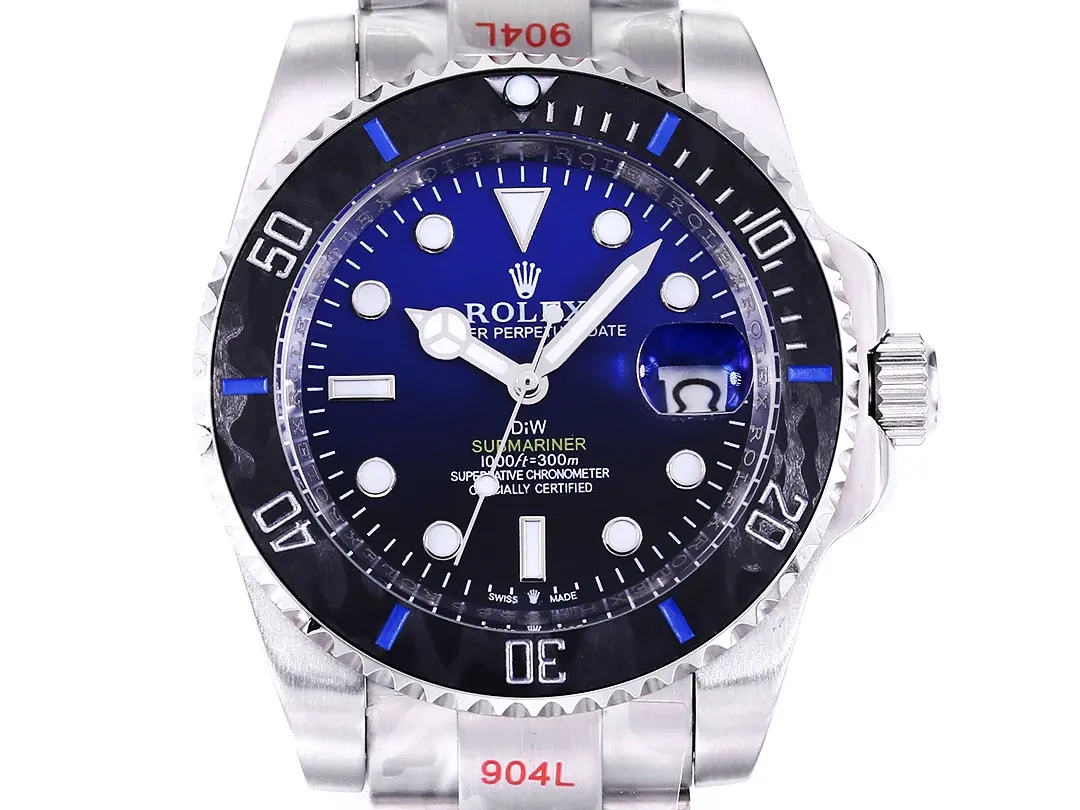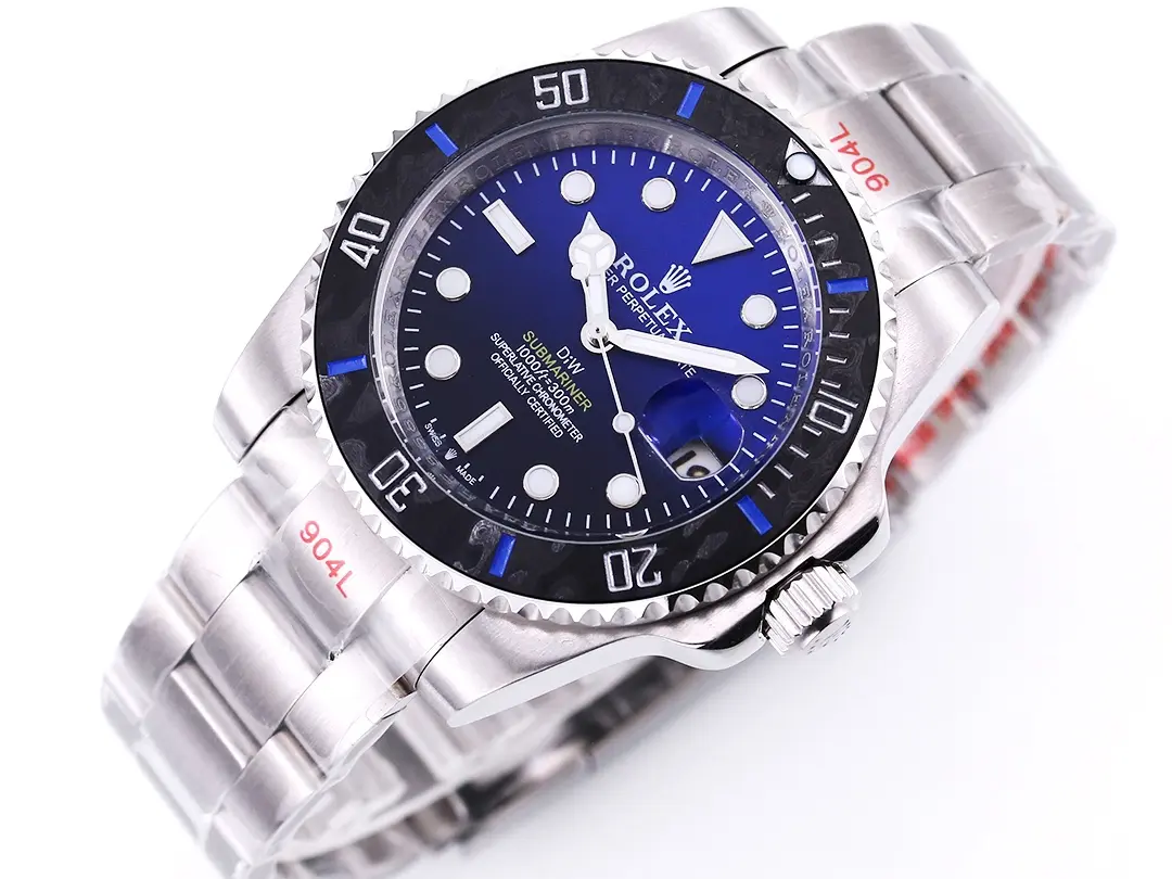 Rolex Submariner PARAKEET – Custom Blue Gradient Dial, Carbon Fiber Bezel, Stainless Steel — Premium 1:1 super clone. Case: 904L stainless steel case and bracelet. Crystal: Genuine sapphire crystal with AR coating. Movement: Clone Cal. 3235 (28,800 bph, 70hr power reserve, date). 12-month movement warranty. Free worldwide shipping on orders over $1,200.