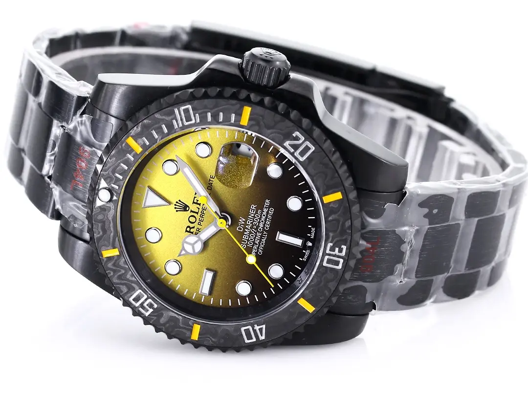 Rolex Submariner PARAKEET – Custom Gradient Green Dial, Black Carbon Fiber Bezel, 904L Stainless Steel — Premium 1:1 super clone. Case: 904L stainless steel case and bracelet. Crystal: Genuine sapphire crystal with AR coating. Movement: Clone Cal. 3235 (28,800 bph, 70hr power reserve, date). 12-month movement warranty. Free worldwide shipping on orders over $1,200.