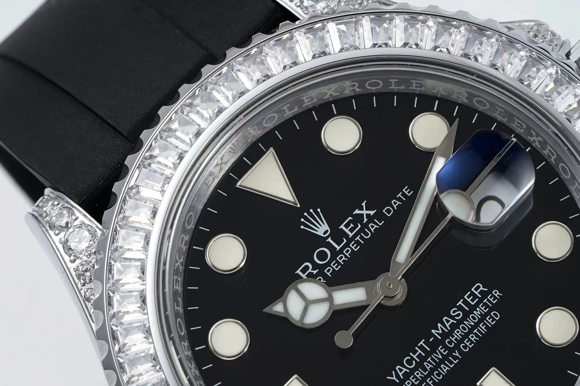 Rolex Yacht-Master 42mm Black Dial Diamond Bezel Rubber Strap Watch
