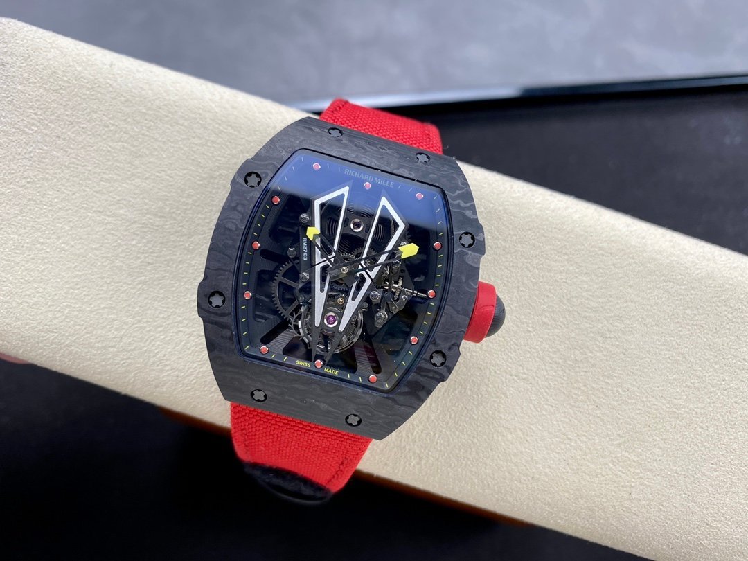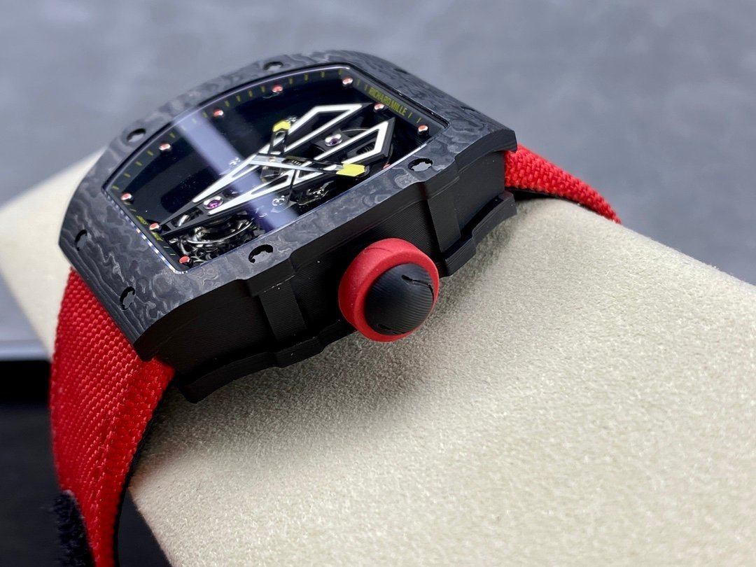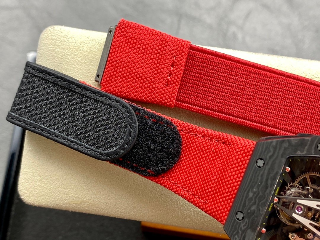 Swiss Replica Richard Mille RM27-03 Black Carbon Fiber Case with Red Woven Strap