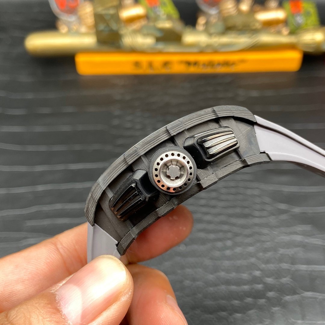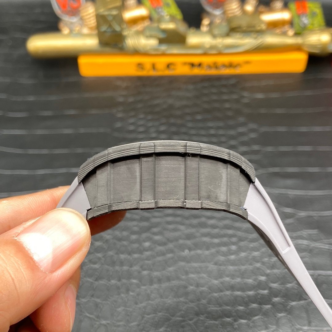 Swiss Richard Mille RM 11 Replica – 49mm Carbon Case, Skeleton Dial, Grey Rubber Strap