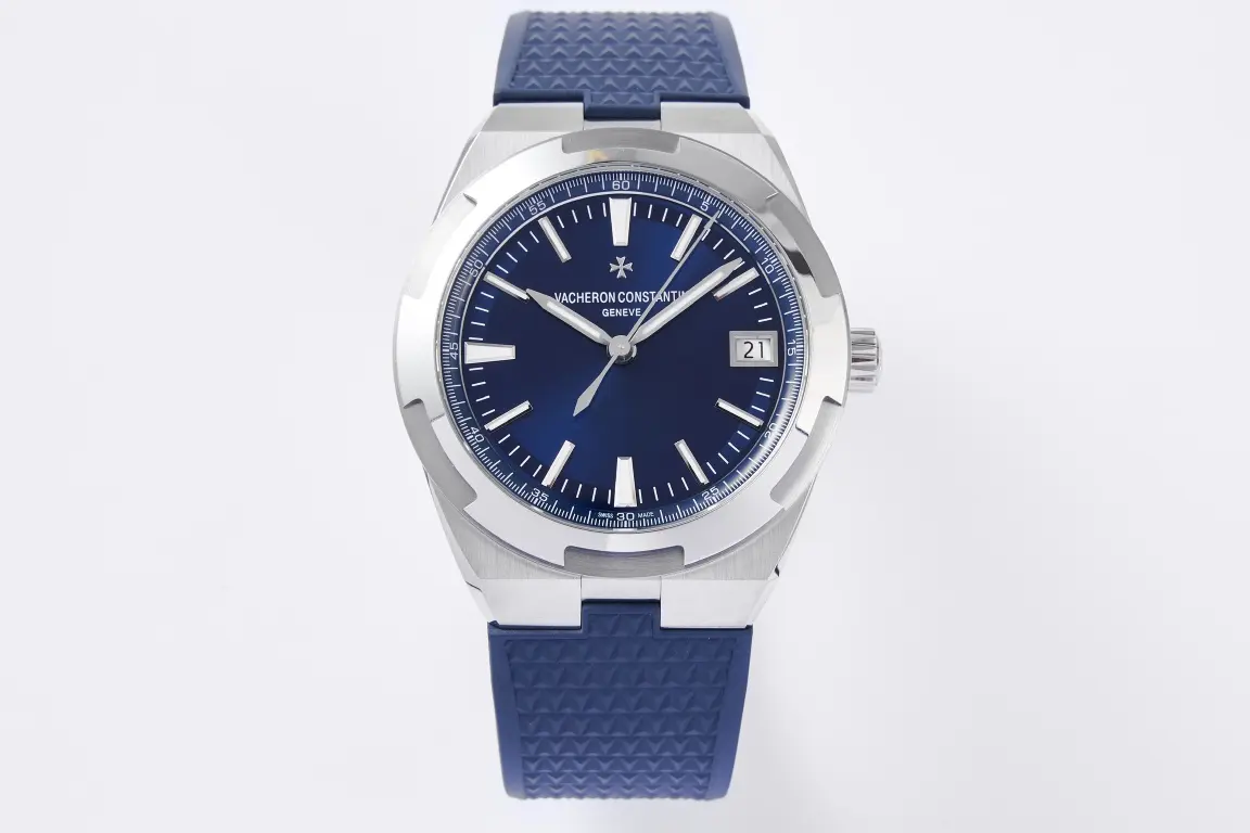 Vacheron Constantin Overseas 4500V Series – Blue Dial, Rubber Strap, Luxury Steel – Quality — Premium 1:1 super clone. Case: 316L stainless steel or 18k gold case. Crystal: Genuine sapphire crystal with AR coating. Movement: Clone Cal. 5100 (28,800 bph, date, power reserve indicator). 12-month movement warranty. Free worldwide shipping on orders over $1,200.