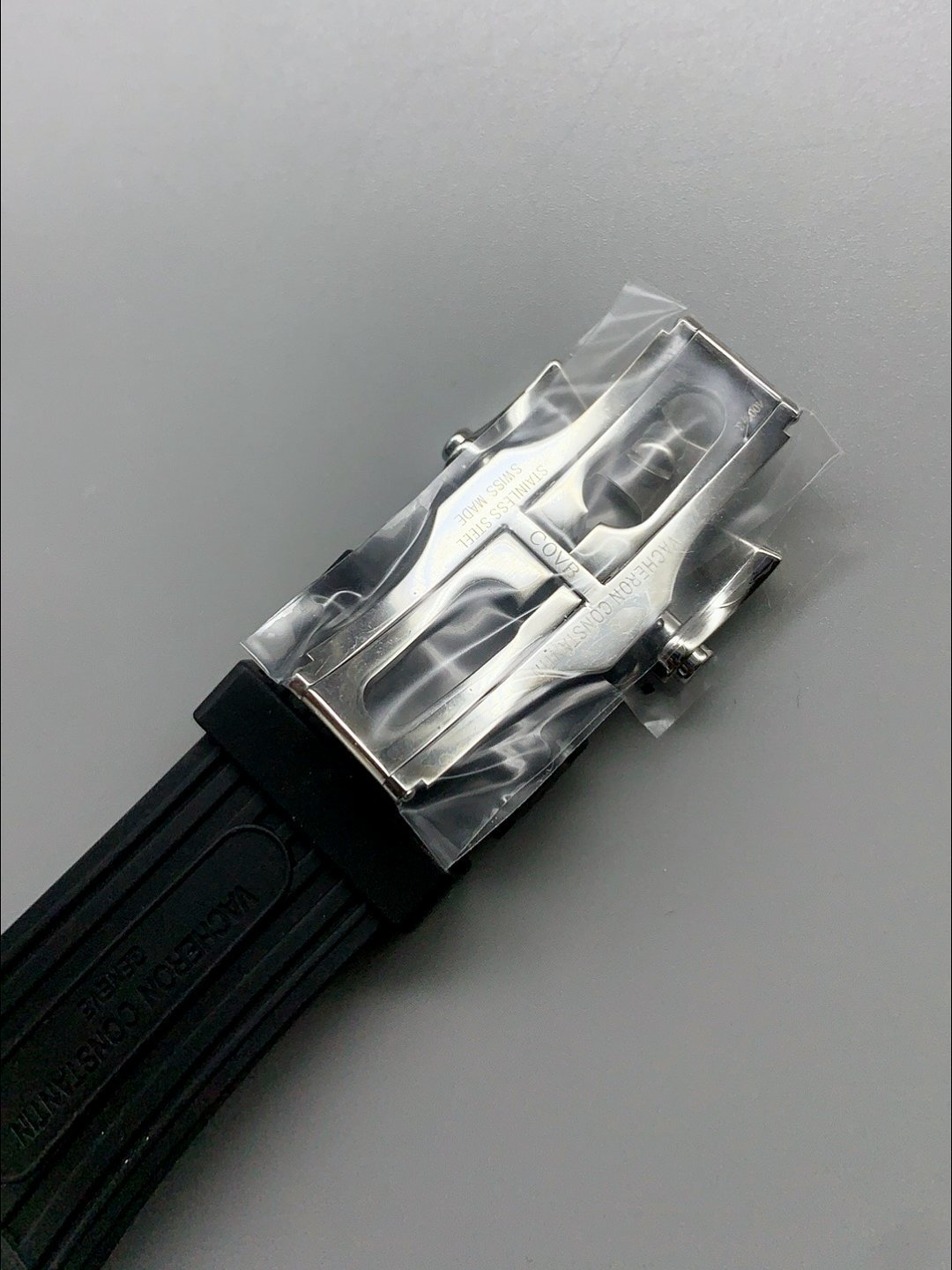 Rubber strap with folding clasp, also engraved with Vacheron Constantin logo and lettering